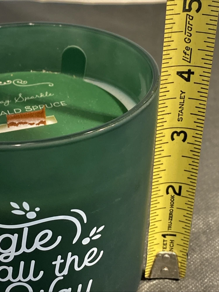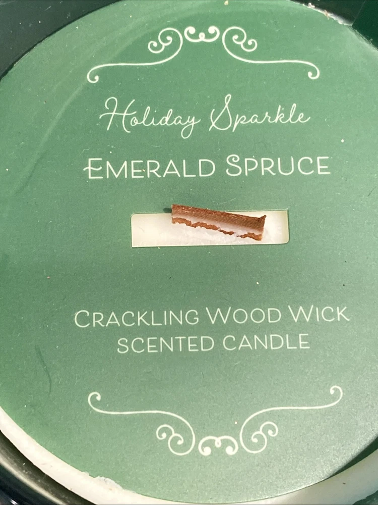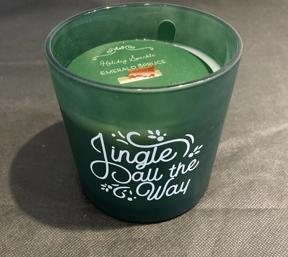 Holiday Sparkle Emerald Spruce Crackling Wood Wick Scented Candle. Measurements and details as per pictures.