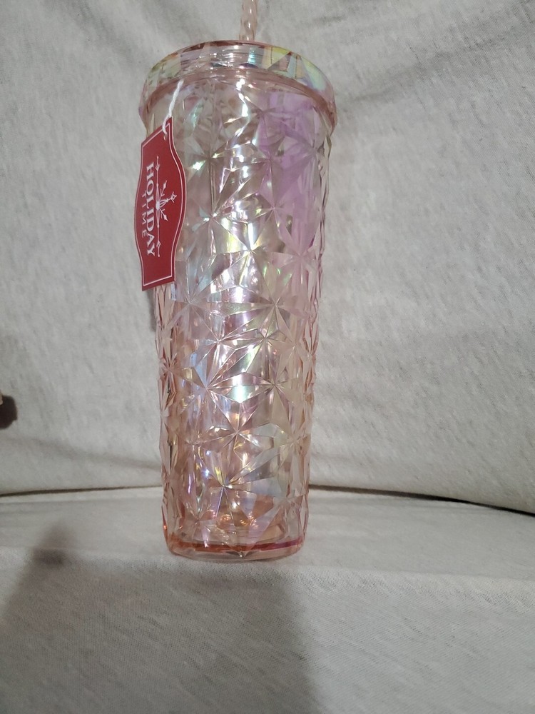 Enjoy your favorite beverages in this stylish 26-ounce acrylic iridescent double wall tumbler from Holiday Time. The tumbler comes with a clear (Prismatic pink) cup and a straw, making it perfect for all occasions. Its textured style and awesome theme add a touch of festive cheer to your drinkware collection. Made of plastic and acrylic materials, this tumbler is durable and perfect for regular use. The tumbler features a lid with a built-in straw, making it easy to sip your drinks without spilling. Whether you're a teen, adult, or kid, this tumbler is perfect for everyone. Get yours now and enjoy your drinks in style!
