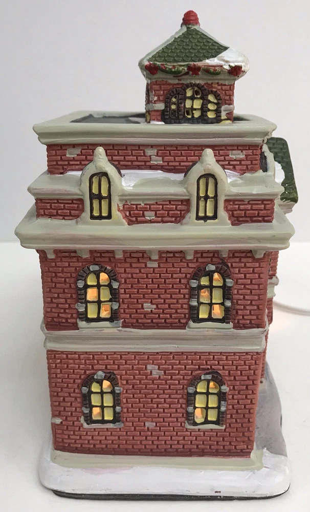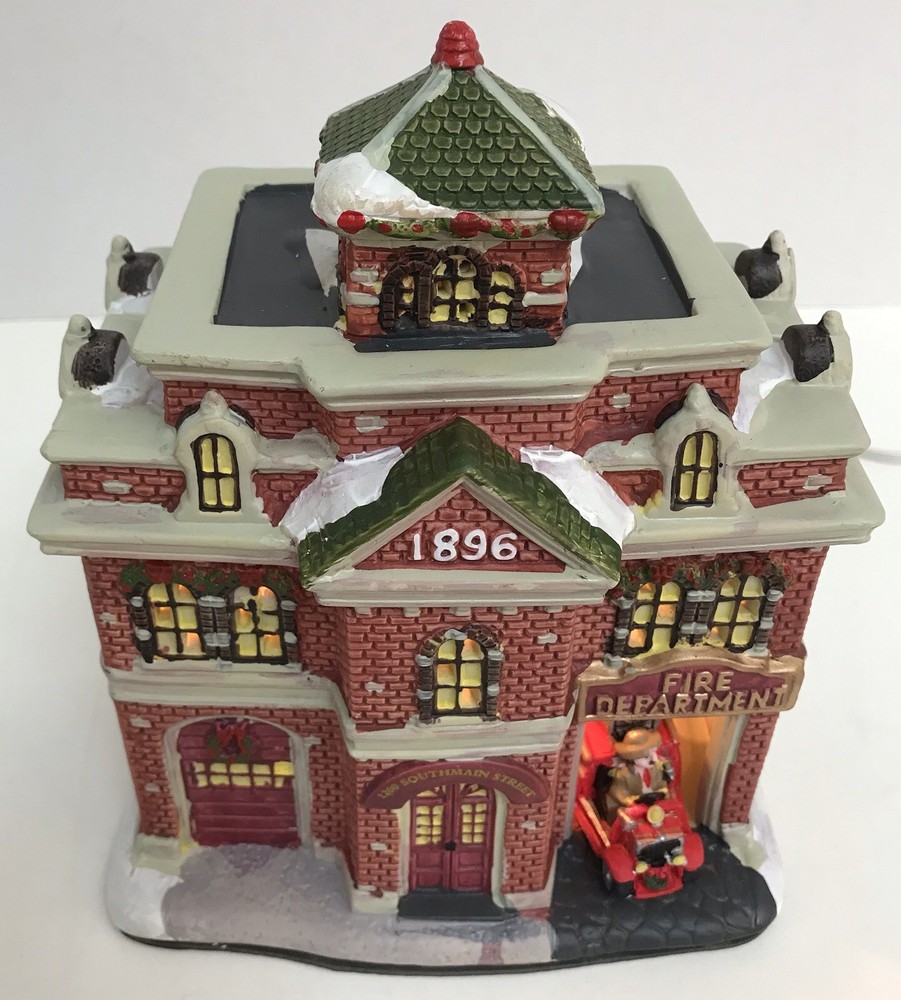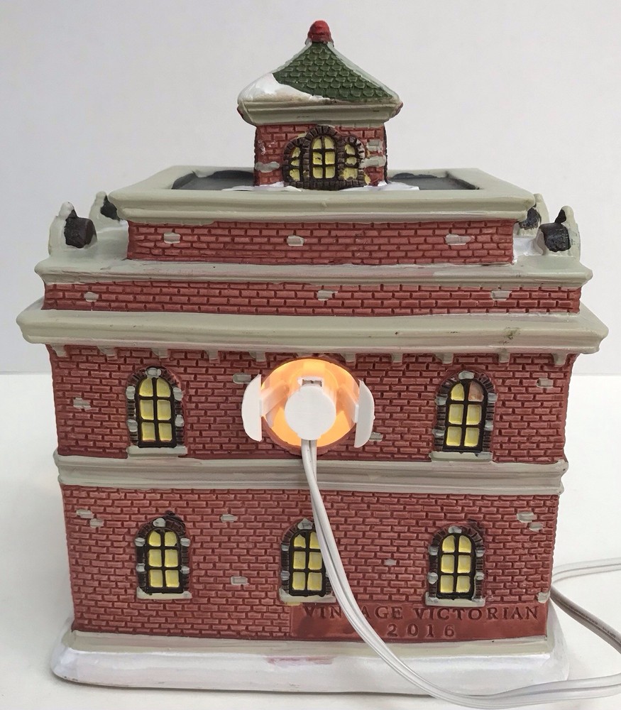 Holiday Time Christmas Village FIRE DEPARTMENT Vintage Victorian 2016 Lighs Up Building is in nice condition. The light switch is stuck in the on position. Please see photos for condition details.