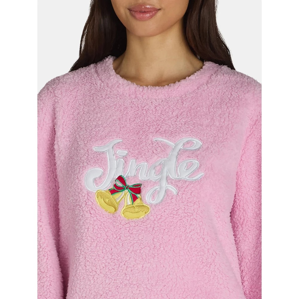 Product details Jingle all the way to bed with this Ornaments Holiday Plush Pajama Set by Holiday Time. Crafted in ultra-soft plush fabric, this set features a long sleeve top with an embroidered Jingle bells graphic along with matching pants. This comfy set will help get you in the decorating spirit with its allover ornament print on the pants—so cozy up as you wrap up gifts, put up your tree, or get your place ready for Santa! Get your plush set today or make it the perfect gift. Material: 100% Polyester Care: Machine Washable Country of Origin: Imported Size: Model is approx. 5’10” and is wearing a size S Set Includes: 1 top and 1 pants Top Features: Relaxed fit; pullover style; long sleeves; embroidered Jingle Bells graphic; super soft and plush fabric Pant Features: Relaxed fit; pull-on style with elastic waistband for added comfort; allover ornament print; super soft velvet fabric Ornaments Holiday Plush Pajama Set for Women and Women’s Plus from Holiday Times Features Easy Care, Elastic Waistband Brand Holiday Time Clothing Size m Gender Female