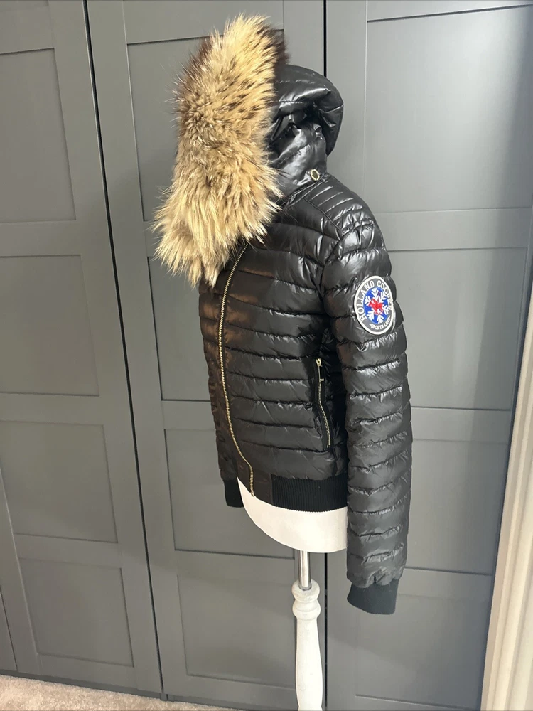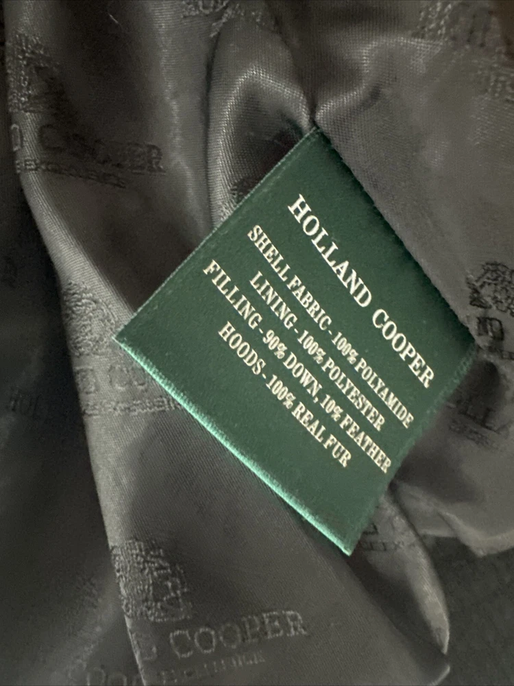 Holland Cooper coat Very good condition - bit bobbley on the bottom of the stretchy panels but not that bad, and rest of the coat is a lovely condition Size XS, fits a 6 nicely, should fit an 8 if you have small hips/waist, the stretchy bottom of the coat is the smallest part. Real fur, trim and also hood are removable