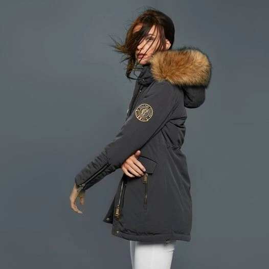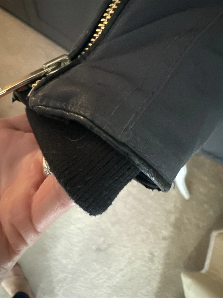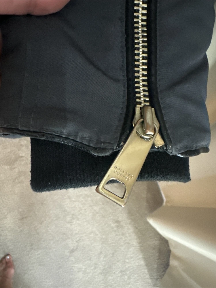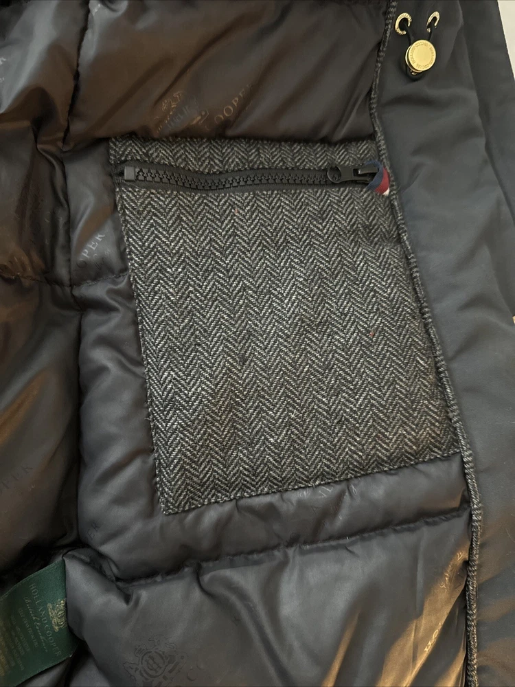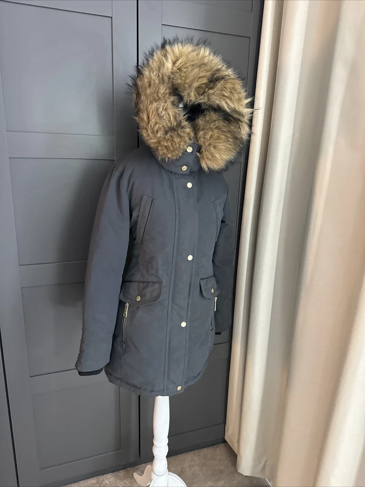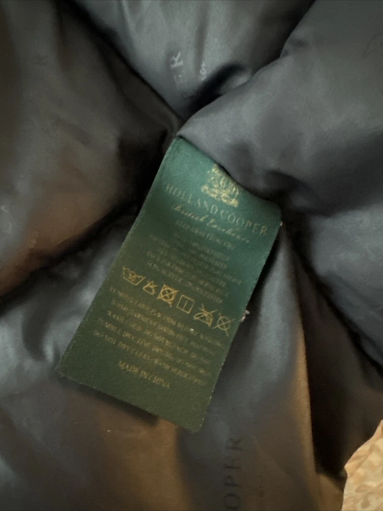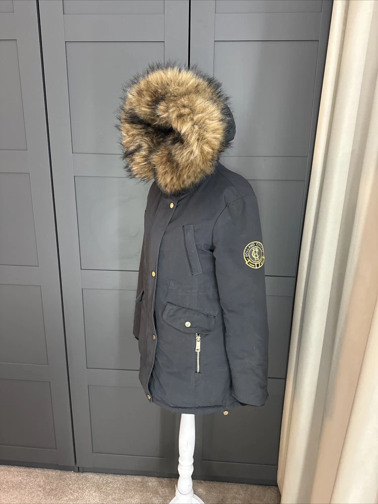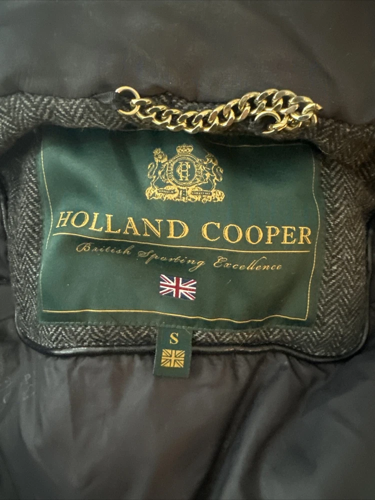 Lovely heavy, waterproof and down coat. It is worn but in good condition, slight bobbling on cuffs but these are more or less hidden, and some peeling to the cuff edging rubber/leather Size Small, fits an 8 nicely Shown on a size 8 mannequin