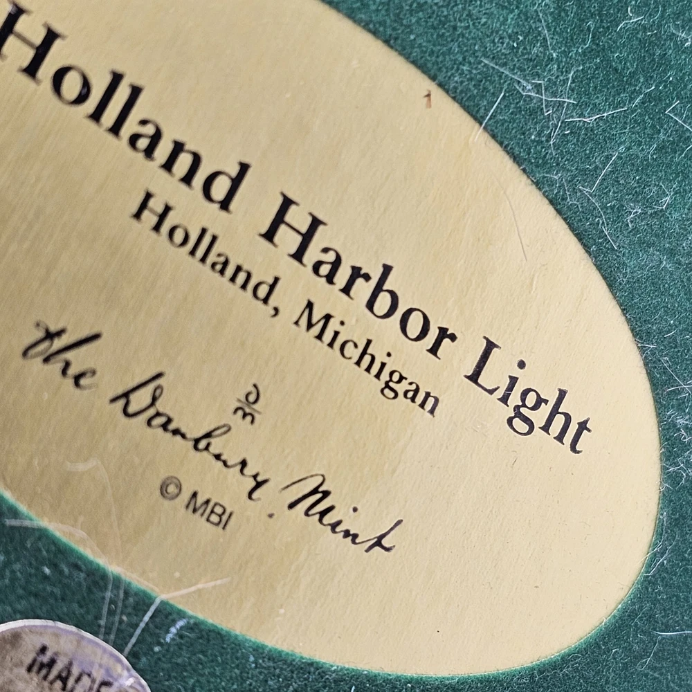 This beautiful sculpture by Danbury Mint depicts the Holland Harbor Light House in Holland, Michigan. The intricate details of the lighthouse and the surrounding water make this a perfect addition to any collection of decorative collectibles. The sculpture is made of high-quality materials and is expertly crafted to ensure its durability. Whether you are a collector or simply looking for a unique piece of decor, this sculpture is sure to impress. See photos for wear. Fence looks a little bent