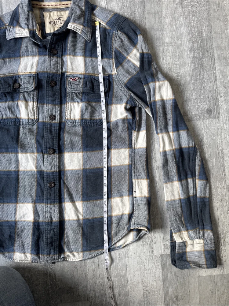 **Title:** Hollister Men's Plaid Flannel Shirt Size Small Blue and White - Excellent Condition **Description:** **Hollister Men's Plaid Flannel Shirt - Size Small** **Product Details:** - **Brand:** Hollister - **Size:** Small - **Condition:** Used - Excellent Condition - **Material:** [Insert Material, typically 100% Cotton] - **Color:** Blue and White Plaid **Features:** - **Plaid Pattern:** Classic blue and white plaid design. - **Button-Down:** Front button closure for easy wear. - **Chest Pockets:** Two chest pockets with button flaps. - **Collared:** Traditional collar for a polished look. - **Long Sleeves:** Comfortable and perfect for layering in cooler weather. - **Soft Fabric:** Made from high-quality, soft flannel material. **Care Instructions:** - **Machine washable:** Easy care and maintenance. - **Wash inside out with like colors:** To preserve the fabric quality and color. **Condition Details:** - **Used in excellent condition:** This shirt shows minimal signs of wear. The fabric and buttons are in great shape. Please check all the photos to see the exact condition. **Photographs:** - **Close-up of the collar and chest pockets:** Showing minimal wear and intact condition. - **Overall view of the shirt:** Showing general excellent condition. - **Detail of the sleeves:** Sleeves are in great condition with no fraying. - **Additional details:** Various angles to provide a comprehensive view of the shirt's condition. **Why You'll Love This Shirt:** - **Classic Style:** The plaid pattern and flannel material offer a timeless look that's perfect for casual wear. - **Comfortable and Warm:** Made from soft, high-quality flannel, this shirt is ideal for layering and staying warm. - **Versatile:** Great for pairing with jeans for a relaxed look or layering over a t-shirt for added warmth. - **Quality You Can Trust:** Hollister is known for its high-quality apparel and attention to detail. **Shipping and Returns:** - **Fast Shipping:** Your shirt will be shipped within 1-2 business days after payment is received. - **Returns Accepted:** If you're not completely satisfied, returns are accepted within 30 days of purchase. Buyer pays return shipping. **Buy with Confidence:** - **Trusted Seller:** Check out our feedback to see what our satisfied customers are saying. - **Secure Transaction:** Your purchase is protected by eBay's buyer protection program. **Don't miss out on this Hollister Men's Plaid Flannel Shirt! Order now and enjoy the perfect blend of style and comfort.** Feel free to contact us if you have any questions. Happy shopping!