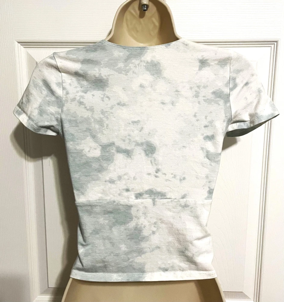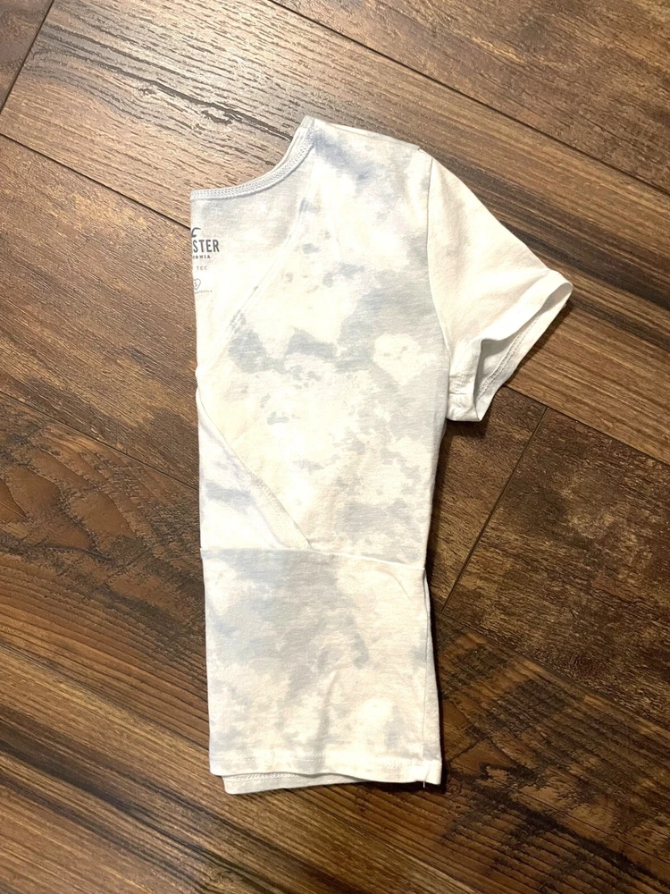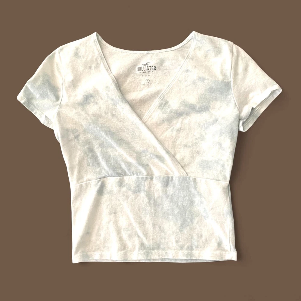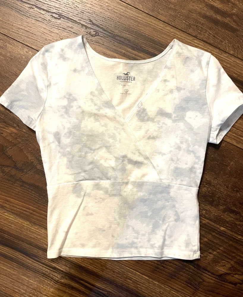 Great condition, barely worn baby tee size small from Hollister. Color is white and light blue. Comes from a smoke free home. Free shipping