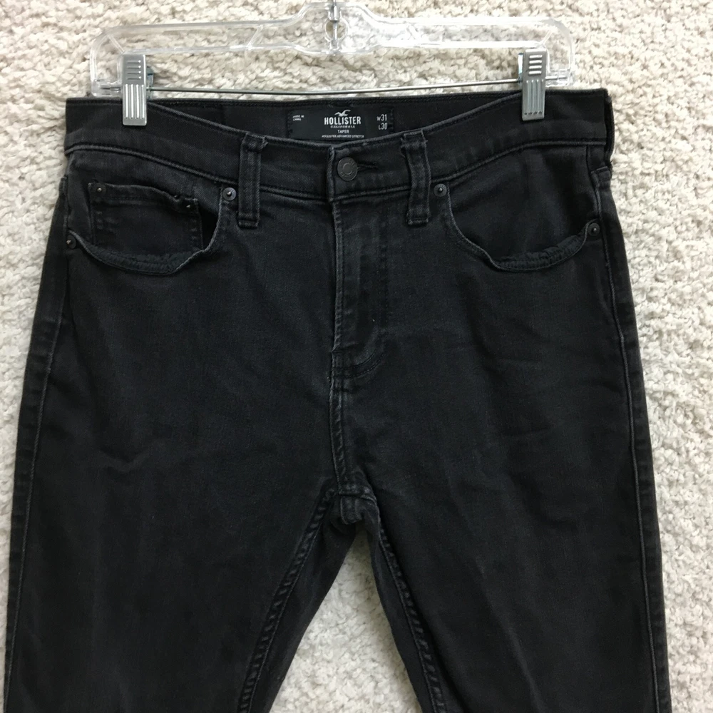 Hollister Jeans 31x30 ( Fits 31x28) Mens Black Taper Stretch Dark Wash Denim