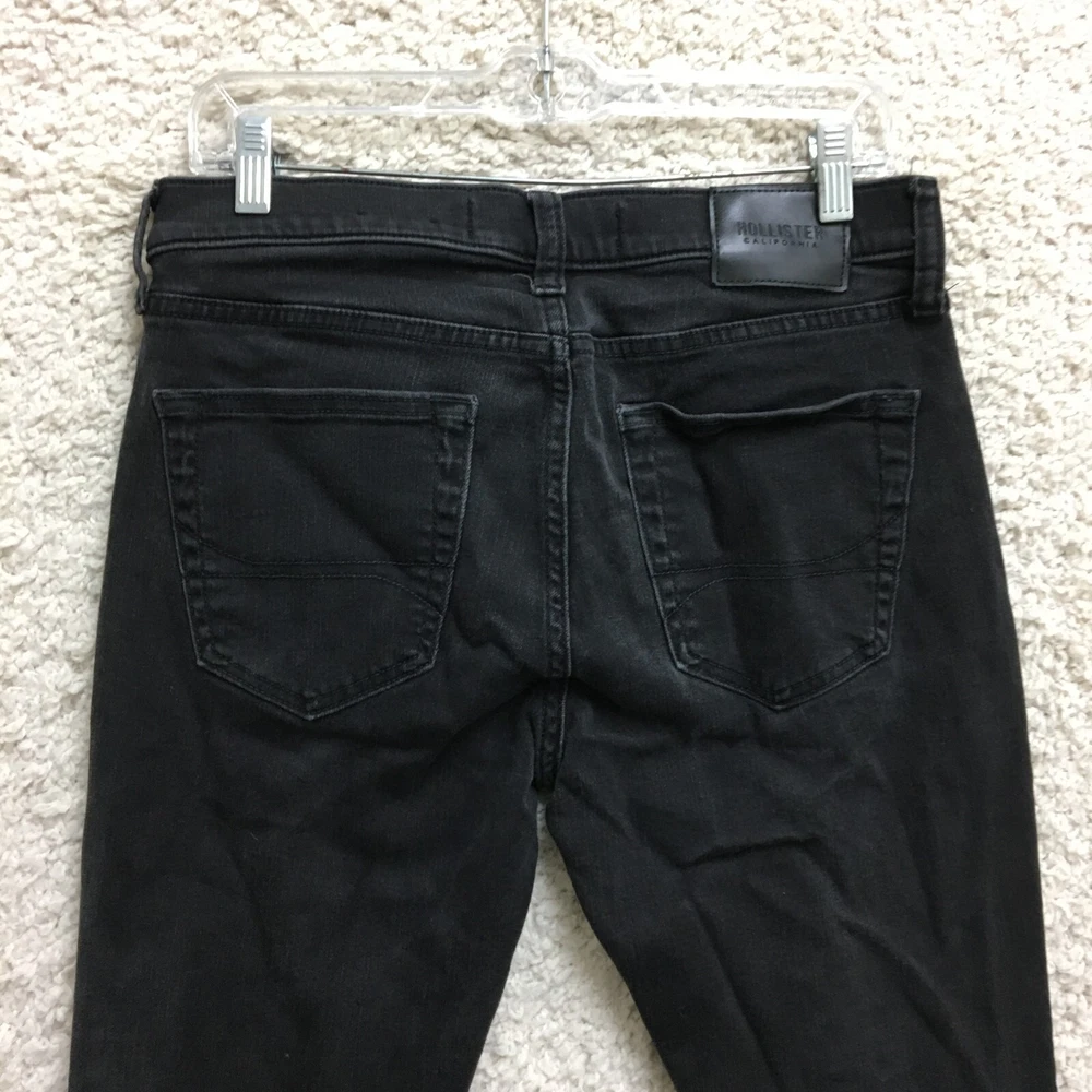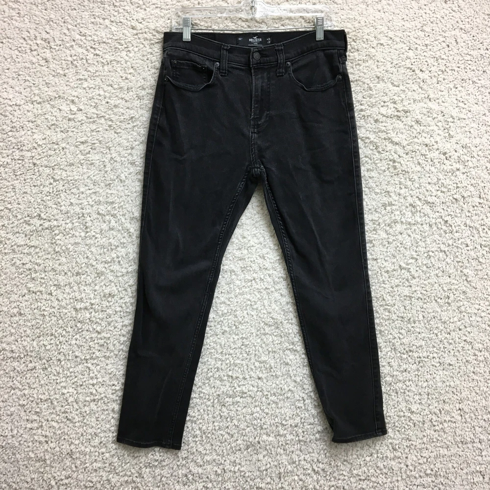 Garment Care: Machine Washable Fabric Type: Denim Inseam: 28 in Style: Tapered Color: Black Pattern: Solid Size: 31 Fabric Wash: Dark Fit: Regular Waist Size: 31 in Department: Men Features: Breathable, Comfort, Stretch Pocket Type: 5-Pocket Design Rise: Mid (10-12 in) UPC: Does Not Apply Closure: Button, Zip Seller Notes: “Very Good Used Condition. Please, See Pictures for Full Condition and Measurements.” Material: Cotton, Cotton Blend, Polyester gtin13: Does Not Apply Theme: Preppy, USA Brand: Hollister Season: Fall, Spring, Summer, Winter Country/Region of Manufacture: China Type: Jeans Size Type: Regular Accents: Button, Logo