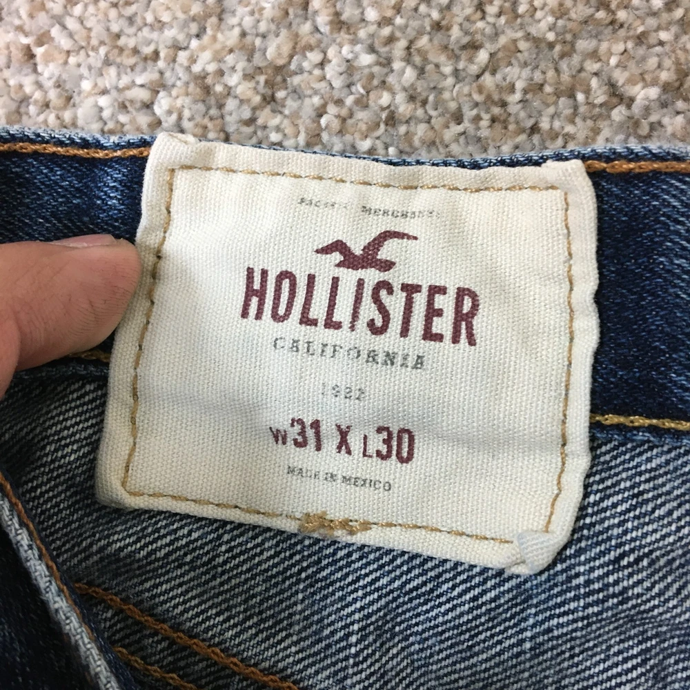 Fabric Type: Denim Pocket Type: 5-Pocket Design Rise: Mid (10-12 in) Closure: Button, Zip Size: 31 Garment Care: Machine Washable gtin13: Does Not Apply UPC: Does Not Apply Country/Region of Manufacture: Mexico Fabric Wash: Medium Brand: Hollister Waist Size: 31 in Style: Bootcut Type: Jeans Color: Blue Season: Fall, Spring, Summer, Winter Department: Men Inseam: 30 in Theme: Preppy, USA Size Type: Regular Material: Cotton, Cotton Blend, Polyester Accents: Button, Logo Features: Comfort, Easy Care, Pockets Fit: Regular Pattern: Solid