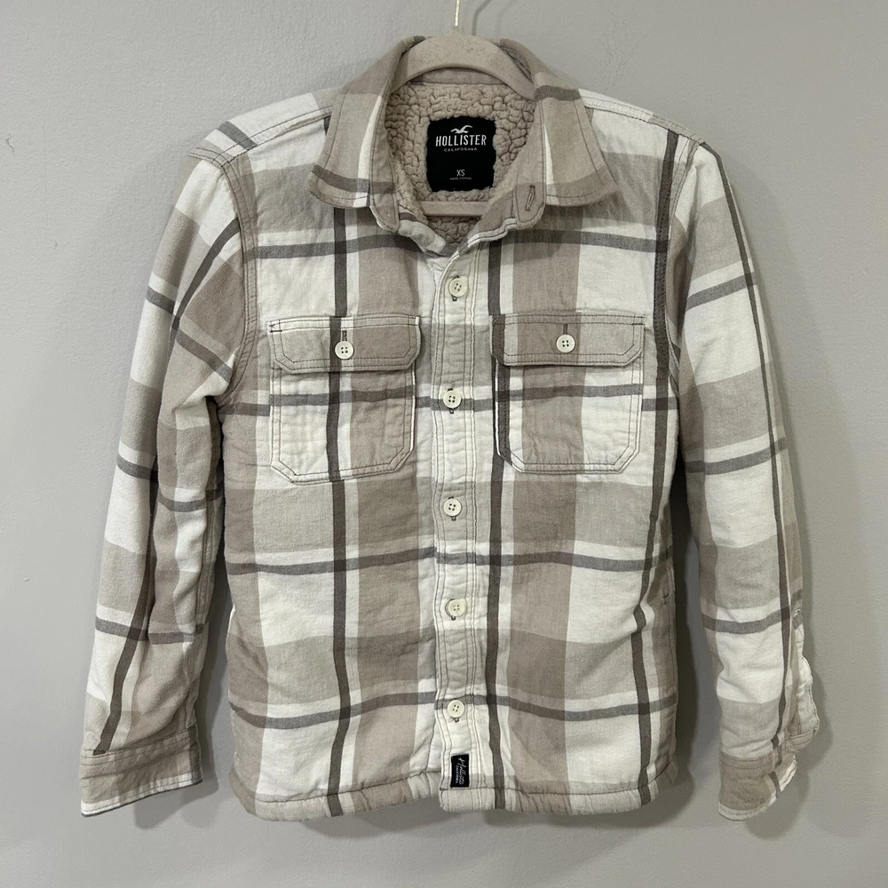 Hollister Men’s Sherpa Lined Plaid Button Down Flannel Plaid Shirt Jacket XS