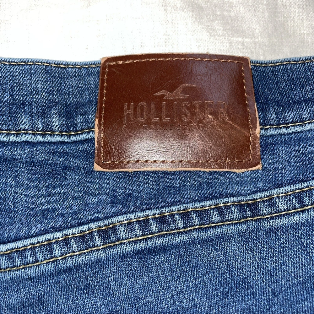 Elevate your style game with these Hollister men's skinny jeans. The deep blue wash and slim fit make them perfect for any occasion. Crafted from high-quality fabric, these jeans are designed to provide comfort and durability. They feature a 33-inch waist and 30-inch leg, making them a great fit for men of all sizes. The Hollister brand is known for its superior quality, and these jeans are no exception. They are perfect for men who want to look their best while staying comfortable.