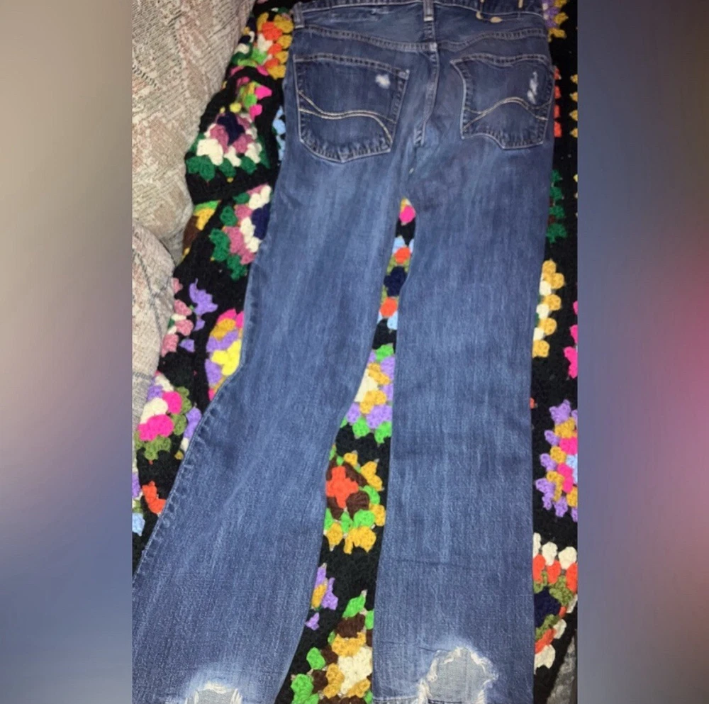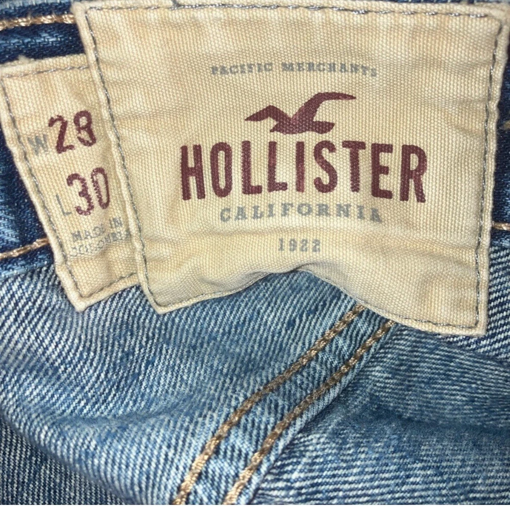 Elevate your casual style with these Hollister ripped slim tapered leg jeans. Made with quality denim, these jeans feature a regular size type and a slim fit that flatters your physique. The tapered leg design adds a modern edge to your look, while the slimming features enhance your shape. These blue jeans come in size 29 with a waist size of 29 inches and an inside leg of 30 inches. Perfect for men, these jeans are a great addition to your wardrobe. Ideal for a day out with friends or a casual outing, these jeans are versatile and comfortable.
