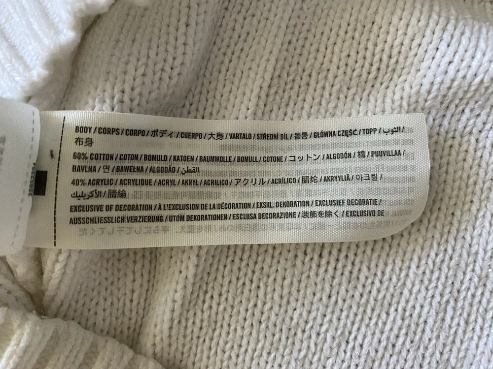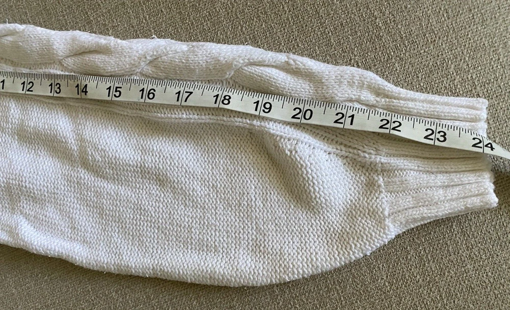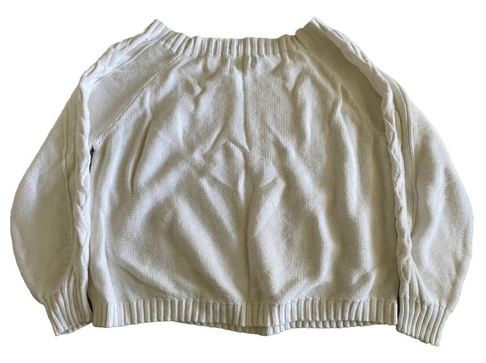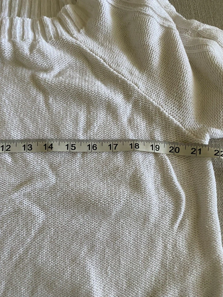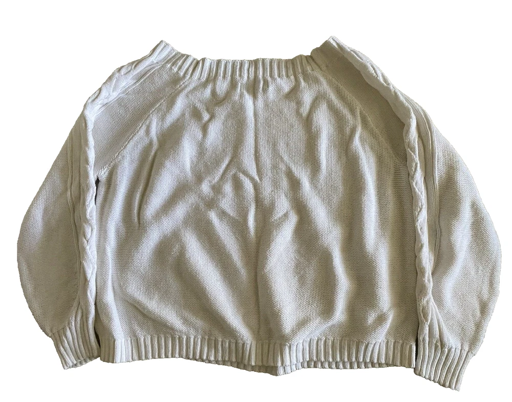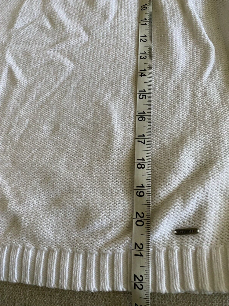 Hollister Sweater Womens Large White Scoop Neck Pullover Tight Knit Sweater Good pre-owned condition. No visible flaws. -60% Cotton/40% Acrylic -Cable Knit Pattern Down Sleeves -Machine Wash Cold -SKU E24-179 Questions? Please ask. Ships next business day. Offers welcome.