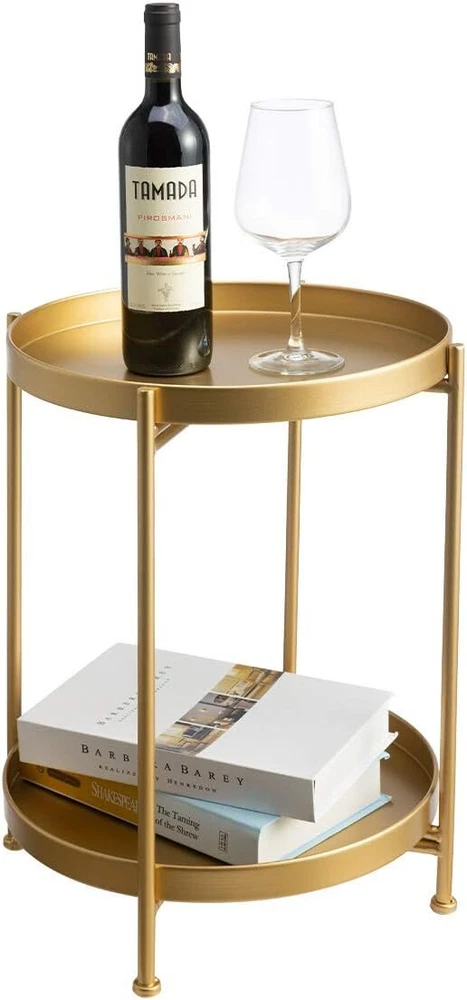 HollyHOME 2-Tier Round Metal End Side Table, Accent Anti-Rust Waterproof Brand HollyHOME Product Dimensions 15.75"D x 15.75"W x 20.47"H Color Gold Maximum Weight Recommendation 6.2 Pounds Product Care Instructions Wipe with Dry Cloth Features [๐๐ฎ๐ซ๐ฅ ๐๐๐ ๐ ๐๐๐ฌ๐ข๐ ๐ง] : Our round end table sports a curled edge design to avoid potential accidents when moving around. [๐๐ฎ๐ซ๐๐๐ฅ๐ ๐๐๐ญ๐๐ซ๐ข๐๐ฅ] : Our small side table is built with anti-rust, waterproof, sturdy metal and powder coating,so end table ensures a lasting durability and waterproof. [๐๐ข๐ ๐ก๐ฅ๐ฒ ๐๐๐ซ๐ฌ๐๐ญ๐ข๐ฅ๐] : Perfect in any room! can be used as a side tables bedroom, coffee table in the living room, nightstand in the bedroom, casual table in the garden or patio, even an outdoor table or plant stand. [๐ ๐๐ข๐๐ซ๐ฌ ๐๐๐ฆ๐จ๐ฏ๐๐๐ฅ๐ ๐๐ซ๐๐ฒ] : Our round accent table has removable tray,it can be used as serving tray around your home.So it is ideal for putting drinks,snacks,books,and other items. [๐๐ฉ๐๐๐ ๐๐๐ฏ๐ข๐ง๐ ] : With a delicate and small footprint, you can easily move our round end table to anywhere. [๐๐๐ฃ๐ฎ๐ฌ๐ญ๐๐๐ฅ๐ ๐๐ง๐ญ๐ข-๐ฌ๐ฅ๐ข๐ฉ] : The adjustable anti-slip mat on each leg can help adjust the height and will protect your floor from scratches. [๐๐ฎ๐ข๐๐ค ๐๐ฌ๐ฌ๐๐ฆ๐๐ฅ๐ฒ] : Thanks to the smart design and easy to follow instructions you can assemble and install our small table in minutes. Our Business 100% Customer Satisfaction We go above and beyond to ensure you receive the best level of service. Returns We want you to be happy with your purchase, however in the rare occasion that you are not, please let us know and we will contact you to arrange either a collection or a refund. Please CONTACT US before leaving any negative feedback and we will promptly sort out any issue with your order. 6199610