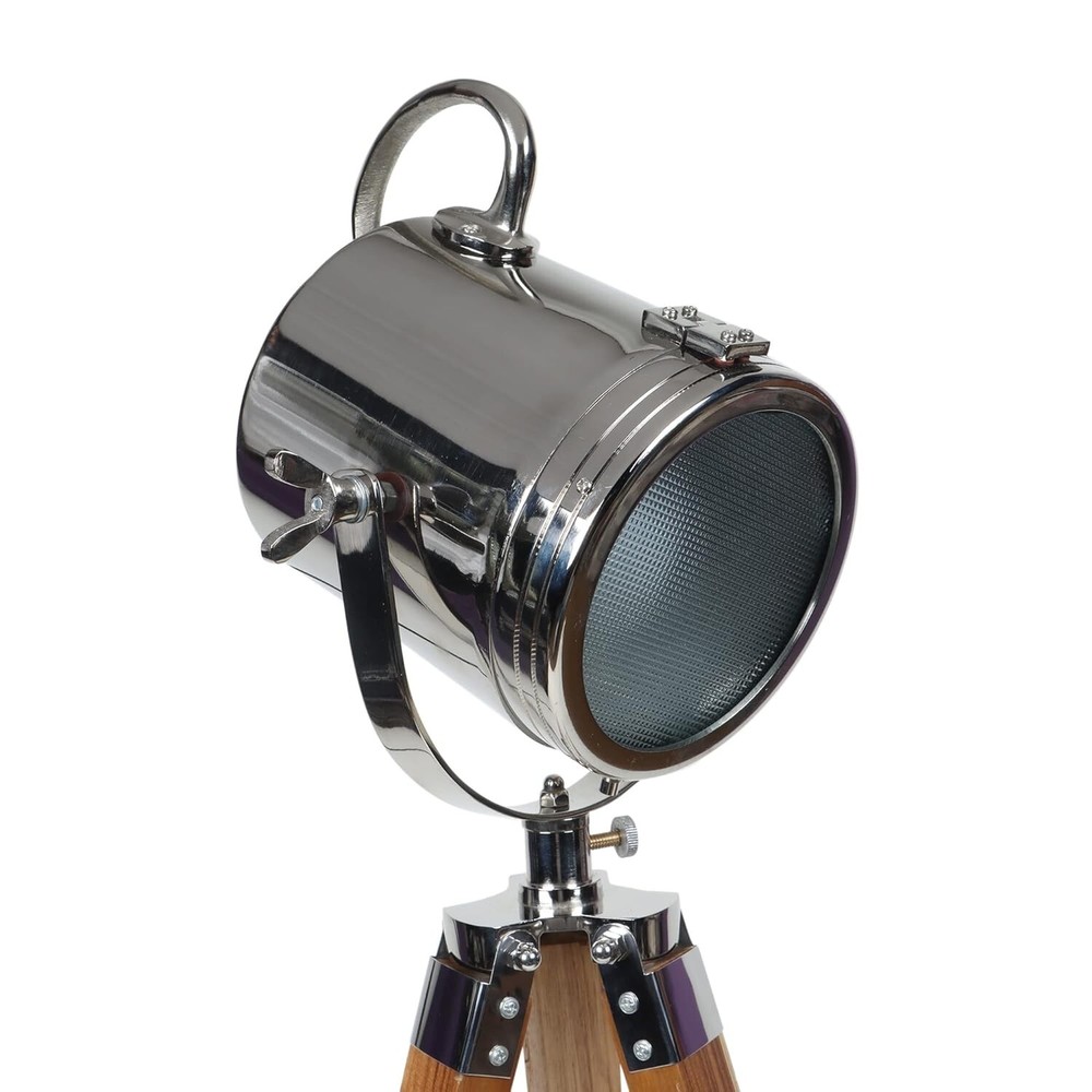 DESCRIPTION Material Used : Wood, Steel, Aluminum & Glass Color : Chrome & Brown Size : Head Size : 9 x 8 Inch Total Height :40" inches Weight : 4.8 kg Approx. Usage : Decoration, Floor Search Light, corner lamp, corner corner light Packing: Packed in a package, Corrugated Export Packaging Wiring : In accordance with national standards (AU, EU, UK, US) You can set it in any place you need, such as bedroom, living room, reading corner, apartment, music room, media room, painting room, office and so on. SOLD BY MEDIEVAL REPLICAS