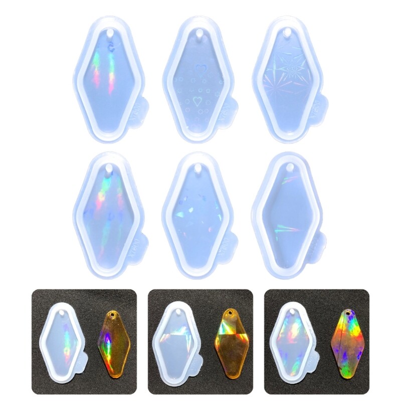 Features: Holographic resin molds,the resin molds are designed with holographic surfaces.this new release design allows the resin keychain to reflect sunlight, creating rainbow light on the surfaces.just let your imagination fly, the holographic resin molds will charm you and enrich your diy resin Durable & reusable,the holographic resin epoxy molds are make of quality silicone, well make, soft, flexible, easy to demold, sturdy, not easy to get deformed, washable, pretty durable and reusable. Enjoy diy fun, the rhombus shaped resin mold can stimulate your creativity and imagination,can add dry flowers, sequins, pigment and glitters or any decorations you like to make unique ornaments or pendant,you can invite your family and to join the diy projects. Widely used,these rhombus shape casting molds are suitable for making keychains, pendants and diy jewelry. Wonderful gift,the resin mold or finished as gift for family, and others who are diy lovers. Specifications: Material:Silicone Type 2 3 4 5 06 Package Includes: Piece Silicone Kechain Molds note: Please allow 1-2cm errors due to manual measurement. Due to the difference betweeen different monitors,the picture may not reflect the actual color of the item.