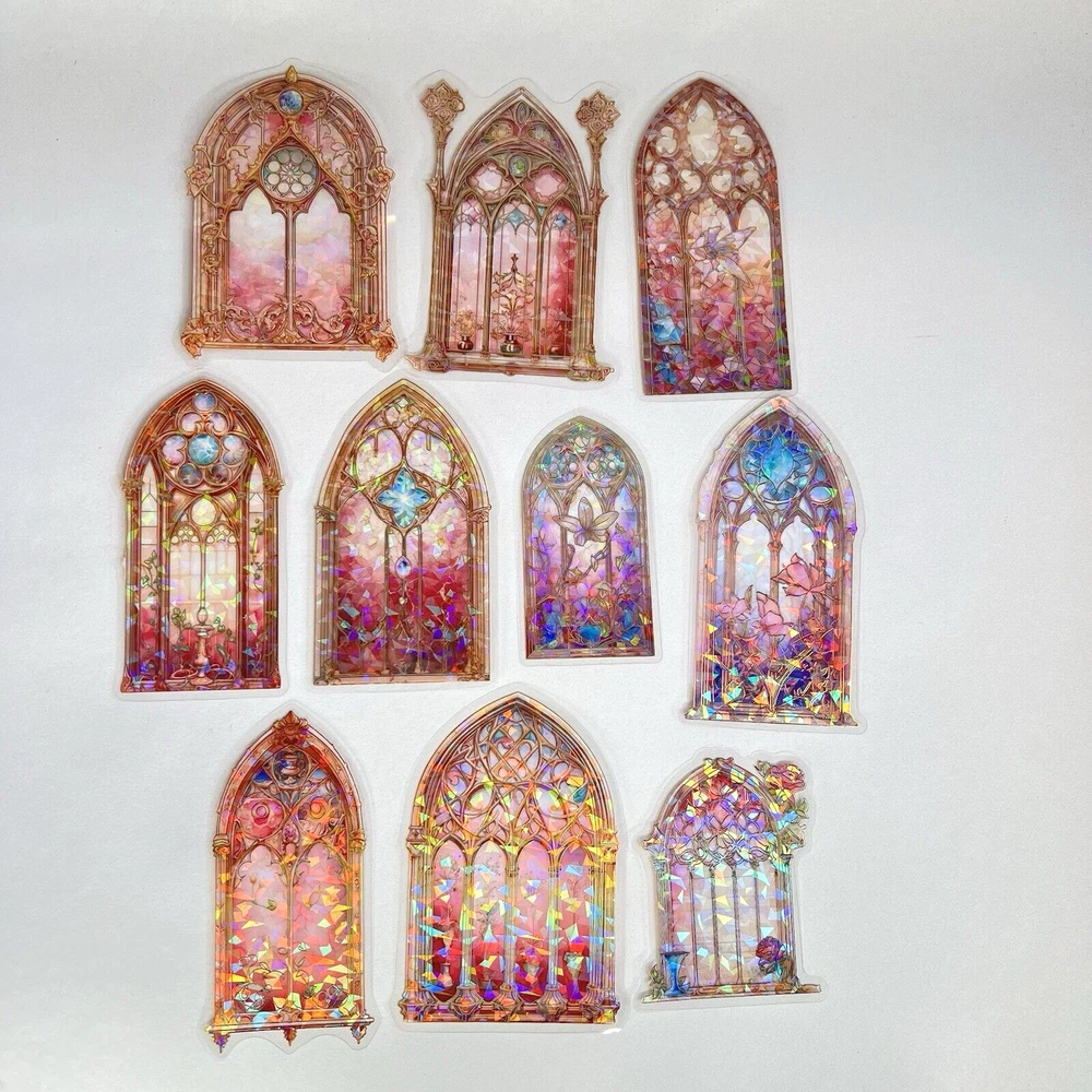 Holographic stickers. Pink hued. Slightly raised holographic foil in areas to add dimensional effect. Made out of PET (images printed on thin flexible clear plastic with a clear peel off backing.) 10 stickers. The sticker in the last photo measures approx. 4 3/4 x 3 1/4 inches. I have more stickers, washi tape and paper for sale. I do combine shipping. Please put all the items you want to purchase in ONE cart and then pay. I will refund you the difference in shipping after shipping label is printed. Let me know if you have any questions through eBay messaging. Thank you for stopping by!