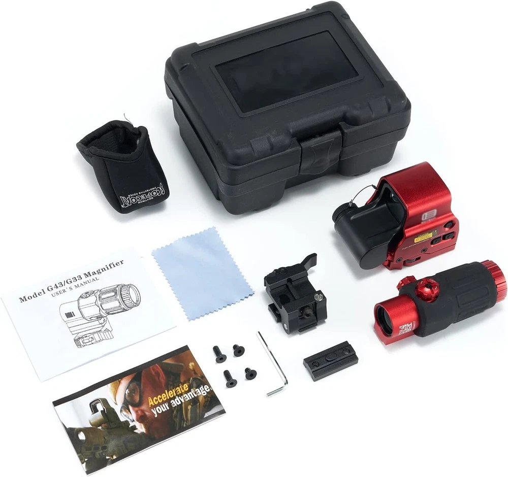 Holographic XPS3 Type Dot Sight & G33-STS Type 3X Booster Set Magnifier Red Description This is a replica set of ✧EXPS3 Holographic & 3rd Generation Magnifier (3x booster). The booster mount can be folded down to 90 degrees and used as an equal-sized dot sight when magnification is not needed. ✧XPS-3 Dot Sight: The latest model with left and right engraving. Circular reticle with red-green brightness, adjustable in 19 levels. Right button: power on/brightness up, left button: brightness down, power off by pressing and holding both left and right buttons at the same time, NV button: switch reticle color (red/green) ✧G33-STS booster: model with 3D engraving and QR code. Easy to use with a long eye relief of 2.2 inches (approx. 55 mm). Vertical and horizontal angle adjustment can be done by hand without using tools. ✧XPS-3: Overall length: approx. 9.5 cm, height: approx. 6.3 cm, width: approx. 5.5 cm, weight: approx. 250 g, battery: 1 x CR123A battery (sold separately) 【G33】 Overall length: approx. 105 mm, weight: approx. 307 g (including mount and spacer), magnification: approx. 3x Payment Please pay within 3 days after the auction closed. Shipping Standard Shipping (With Tracking) : $0.00 Ship from Japan. We ship by EMS or FedEx. You can use the tracking number to check the delivery status of your item. Please rest assured. *Saturdays, Sundays, and holidays cannot be shipped. *We only ship to registered addresses. * Please note that depending on the destination country, delivery may be significantly delayed due to customs inspections, natural disasters, reduced flights in each country, bad weather, etc. Terms of Sale Item(s) will be shipped in 10 business day after your purchase. We will do my best to prepare for shipment as soon as possible. Returns are accepted ONLY if the item was not the item described. International Buyers - Please Note: Import duties, taxes, and charges are not included in the item price or shipping cost. These charges are the buyer's responsibility. Please check with your country's customs office to determine what these additional costs will be prior to bidding or buying.