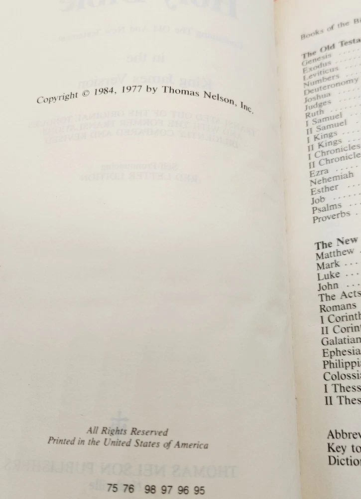 Holy Bible King James Version 1977 Thomas Nelson Red Letter Regency 162MBG