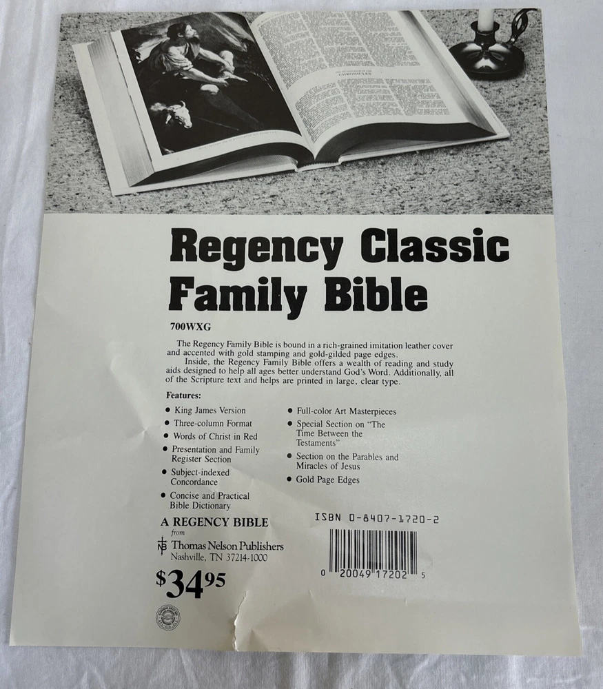 Holy Bible Large King James Version Regency Family Record 700WXG Vintage NEW. See photos.
