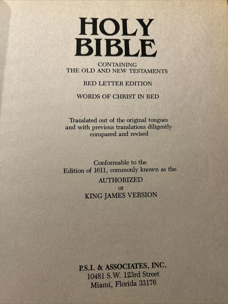 The product is a Holy Bible in red letter edition, specifically the King James Version, that was published in 1987. This particular edition is illustrated, with images throughout its pages to enhance the reading experience. Being a King James Version, it is a widely recognized and traditional translation of the Bible within Christianity. The red letter edition highlights the words spoken by Jesus in red text, making them stand out for the reader. This collectible item would be of interest to those who value religious texts and Christian memorabilia.