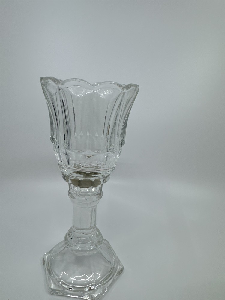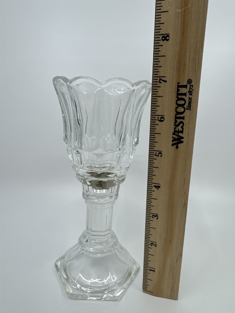 Homco Home Interiors Clear Glass 2pc Clear Glass Crystal Candle Votive Holder 7"