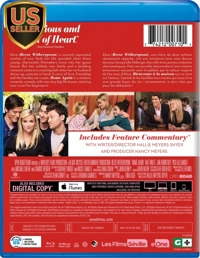 Store New Arrivals Add to Favorite View Feedback Contact Home Again (Blu-Ray) Description Number of discs 1 Language English Format Blu-ray MPAA rating PG-13 (Parents Strongly Cautioned) Country of Origin Canada Aspect Ratio 1.85:1 Director Hallie Meyers-Shyer Genre Romance Run time 1 hour and 37 minutes Book Type Blu-ray Media Format Blu-ray Contributor Michael Sheen, Pico Alexander, Hallie Meyers-Shyer, Nat Wolff, Reese Witherspoon, Candice Bergen Actors Michael Sheen, Reese Witherspoon, Pico Alexander, Nat Wolff, Candice Bergen Runtime 1 hour and 37 minutes Package Dimensions 8.9 x 5.51 x 0.47 inches; 2.08 ounces Subtitles French Studio Imports Recently separated from her husband, Alice Kinney decides to start over by moving back to Los Angeles with her two daughters. While celebrating her 40th birthday, Alice meets Harry, George and Teddy, three young filmmakers who need a place to live. Complications soon arise when she agrees to let the men stay in her guesthouse temporarily. As Alice develops a budding romance with Harry, her newfound happiness comes crashing down when her ex shows up with a suitcase in his hand. The DIGITAL COPY for this movie has EXPIRED. ABOUT US We offer the best prices around on high quality products. Our E-store includes media such as books, movies, music and games while offering electronics, toys, sporting apparel, clothing, tools, general home, garden items and more. SHIPPING We are always working hard to ensure your package arrives as soon as possible. Please understand that some factors like weather, high postal traffic, and the performance of shipping companies are outside of our control. We offer free shipping to the lower 48 states and ship within 2 business days of payment, usually sooner. We do not accept P.O. Boxes. Please provide a physical address. For shipping outside of the continental USA, we only use eBay's Global Shipping Program.The item is shipped to KY and then sent to the rest of the world. International customers are responsible for all duties and taxes. Continue to check out in order to calculate costs for shipping the item to your country. Messages regarding eBay's Global Shipping Program MUST be directed at eBay EXCLUSIVELY. RETURNS We offer a 30-Day Return Policy on items which you are not completely satisfied with. You have the option for a full-refund or an exchange of the item. No returns are available on items shipped outside of the USA. PAYMENT We accept PayPal. CONTACT US This page content is yet to come Please ad us to your favorite seller and visit again later Thank You CUSTOMER SATISFACTION We try our very best to make sure every customer is completely satisfied. If there's a problem, message us! We're happy to help. WE ACCEPT Copyright © 2021 AutoDS. | All Rights Reserved