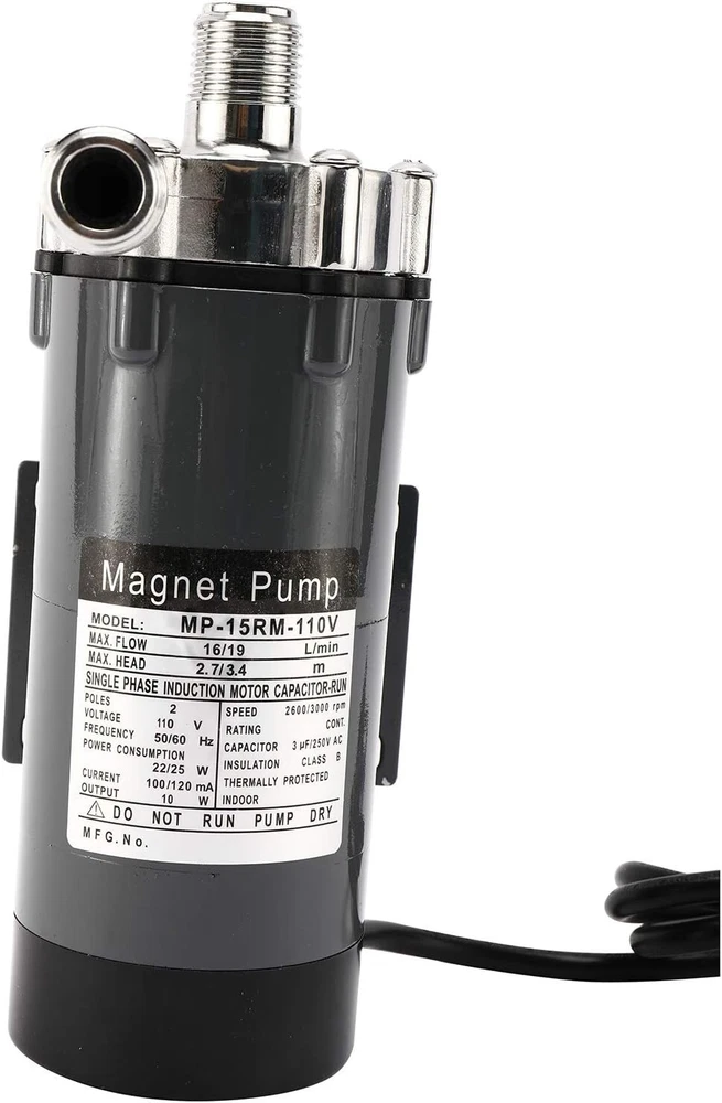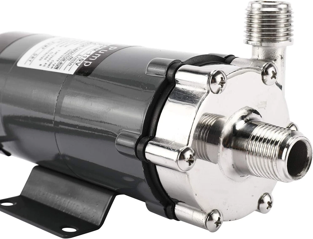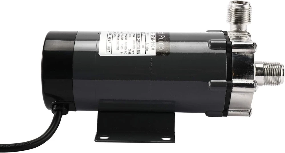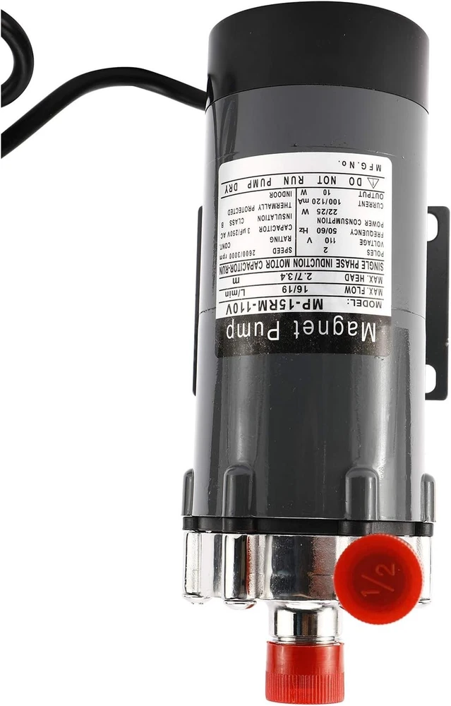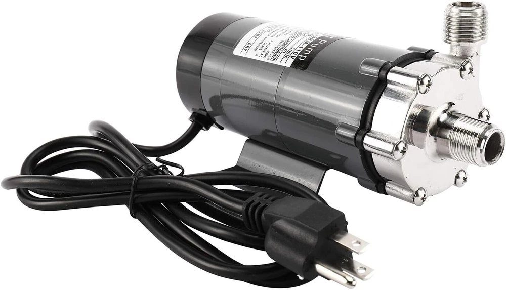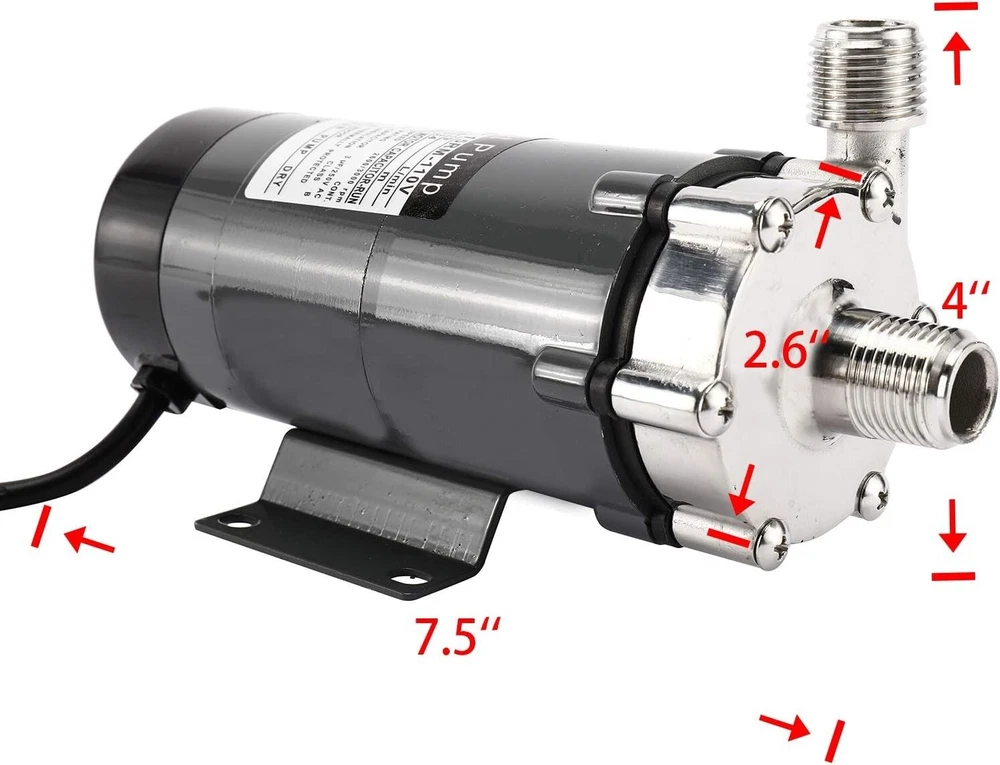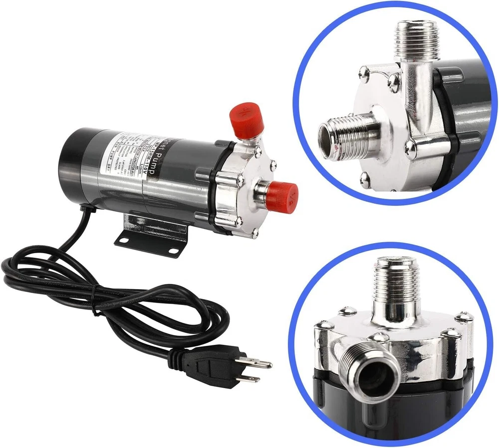 Specification Max flow: 16/19 L/min Max head: 2.7/3.4 M Poles: 2 Voltage: 110V Frequence: 50/60HZ Power consumption: 22/25W Current:100/120mA Output: 10W Speed: 2600/3000 rpm 1/2''NPT thread Heating Resisting 140 Celsius Degree (32℉-284℉) Package included: 1 x Brewing Pump Attention Not Self-Priming, Gravity Pumping, after energization, transfer the liquid by increasing the pressure of the liquid; No On/Off toggle switch, Barb Ending is available; If the pump fan runs a bit hot, install a fan on the outside of the pump to cool it down; If power cut suddenly during pump operation, The power supply must be turned off and Close the outlet gate valve immediately; Pump should be installed below all pots & tanks to ensure it has a positive suction; Keep the pump below the level of your liquid to prime and keep the line out of the pump below the liquid until the line is primed; Food grade stainless steel: the pump adopts high-quality food grade stainless steel magnetic pump,high resistance to corrosion, not easy to get rust,non-toxicity and environmental protection. Quiet and Efficient: the main shaft is separated from the impeller,which is damping and anti-Vibration function,and the pump has low power consumption,low noise, stable operation. Good Sealing: the pump shaft is a closed static seal,splash proof, liquid leakage is greatly avoided,more convenient to use. Widely application:not only ideal for beer dispensing,also suitable for water treatment, pollution controll, chemical industry and other fields. On Sep 30, 2024 at 01:41:48 PDT, seller added the following information: