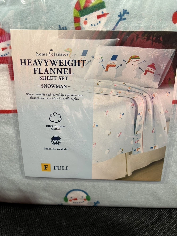 Home Classics Heavyweight Flannel Sheet Set Full Size, Snowman