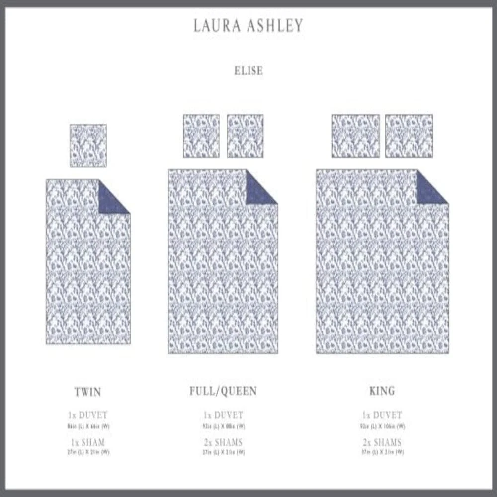 Store New Arrivals Add to Favorite View Feedback Contact Home Elise Duvet Cover Set, Full/Queen, Medium Blue Description Item model number USHSFN1064194 Style Cottage Assembly required No Pattern Floral Country of Origin China Theme Floral Department unisex-adult Cartoon Character Floral Number of Pieces 3 Unit Count 1.0 Count Batteries required No Pillowcase Quantity 2 Material Cotton Age Range (Description) Adult Seasons All Included Components One duvet cover and two shams Closure Type Duvet cover features button closure and inner ties Item dimensions L x W x H 10 x 8 x 5 inches Item Weight 3.19 pounds Sham Quantity 2 Special Feature Reversible Color Medium Blue Global Trade Identification Number 00883893565005 Product Dimensions 10 x 8 x 5 inches Product Care Instructions Machine Wash Size Full/Queen INCLUDES: (1) full/queen duvet cover, (2) matching pillow shams MATERIAL: 100% Cotton FEATURES: Reversible to a coordinating pattern allowing for two different looks. Duvet cover features button closure, and includes inside ties to hold the comforter in place DIMENSIONS: Duvet Cover: 92" x 88" Shams: 20" x 26" CARE INSTRUCTIONS: Machine washable for easy care. Machine wash cold, separately. Delicate cycle. Tumble dry low. Do not bleach. Do not iron. Do not dry clean. Blue and white porcelain has inspired beautiful floral textiles throughout history and its timeless appeal always looks fresh and in style. This striking floral vine pattern on a crisp white cotton ground is highlighted by a dramatic, deep blue floral mini print on the duvet cover reverse. This beautiful bedding set is 100Percent cotton and machine washable for easy care. Duvet cover features button closure with inner ties. Twin duvet cover set includes one duvet cover (86"x66") and one sham (21"x27"). Full/Queen duvet cover set includes one duvet cover (92"x88") and two shams (21"x27"). king duvet cover set includes one duvet cover (92"x106") and two shams (21"x37"). ABOUT US We offer the best prices around on high quality products. Our E-store includes media such as books, movies, music and games while offering electronics, toys, sporting apparel, clothing, tools, general home, garden items and more. SHIPPING We are always working hard to ensure your package arrives as soon as possible. Please understand that some factors like weather, high postal traffic, and the performance of shipping companies are outside of our control. We offer free shipping to the lower 48 states and ship within 2 business days of payment, usually sooner. We do not accept P.O. Boxes. Please provide a physical address. For shipping outside of the continental USA, we only use eBay's Global Shipping Program.The item is shipped to KY and then sent to the rest of the world. International customers are responsible for all duties and taxes. Continue to check out in order to calculate costs for shipping the item to your country. Messages regarding eBay's Global Shipping Program MUST be directed at eBay EXCLUSIVELY. RETURNS We offer a 30-Day Return Policy on items which you are not completely satisfied with. You have the option for a full-refund or an exchange of the item. No returns are available on items shipped outside of the USA. PAYMENT We accept PayPal. CONTACT US This page content is yet to come Please ad us to your favorite seller and visit again later Thank You CUSTOMER SATISFACTION We try our very best to make sure every customer is completely satisfied. If there's a problem, message us! We're happy to help. WE ACCEPT Copyright © 2021 AutoDS. | All Rights Reserved