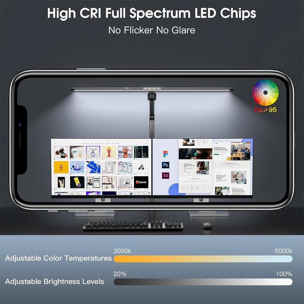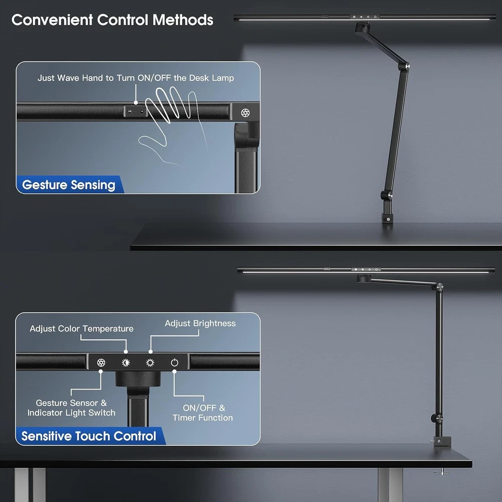 Under Desk Foot Warmer Silent Personal Space Heater With Thermostat and Timer 73.86 USD 77.75 USD Free shipping 5% off Digital Display Ceramic Heater 750W Wall Outlet Plug-in Space Heater White 44.95 USD 47.32 USD Free shipping 5% off 1500W Portable Ceramic Space Heater with Thermostat Tip-Over Overheat Protection 39.72 USD 41.81 USD Free shipping 5% off Portable Oscillation Space Heater 1500W PTC Ceramic Electric Heater w/Thermostat 52.24 USD 54.99 USD Free shipping 5% off 1500W Space Heater, Portable Electric Heater Heat Up 200 Square Feet for Indoor 48.92 USD 51.49 USD Free shipping 5% off 2PCS Milkhouse Space Heater 1500W Electric Heater w/Thermostat 3 Heat Settings 91.19 USD 95.99 USD Free shipping 5% off Heated Floor Mat Foot Warmer Under Desk 19.7x21.7in Heated Feet Rest Home Office 47.69 USD 50.2 USD Free shipping 5% off Portable Electric Space Heater w/Thermostat Overheat Protection Energy Efficient 40.86 USD 43.01 USD Free shipping 5% off Cat Water Fountain w/Water Level Window 3.2L Stainless Steel Auto Water Fountain 45.59 USD 47.99 USD Free shipping 5% off 4L Automatic Cat Feeder WiFi Automatic Cat Food Dispenser w/APP Feeding Control 40.86 USD 43.01 USD Free shipping 5% off 4L Automatic Cat Dogs Water Dispenser with Placemat and Stainless Steel Bowl 40.86 USD 43.01 USD Free shipping 5% off 37"Cat Scratching Post Sisal Rope Scratcher with Dangling Teaser Ball/Covered 37.44 USD 39.41 USD Free shipping 5% off Finish Type Lacquered or Painted Base Material Metal Bulb Base E26 Product Dimensions 2.2"D x 31.8"W x 43.3"H Lamp Type LED Desk Lamp About this item 【Eye-caring, Ultra 31.5"W 24W Brightest】Our desk lamp uses the latest LED technology, no blue light and no glare, soft light source protects your eyes from fatigue. This is very suitable for large workbenches with wide curved monitors or dual monitors, drafting desks, and architect desks, allowing you to have a good lighting environment when working, reading, studying, drawing sewing, and crafting 【Asymmetric Optical Design & Gesture Sensing】Asymmetric optical design for work at home office or multi-screen professionals, 45°side-emitting light source is hidden inside the lamp head, eliminates the screen reflections that most common desk lamps produce. Wave your hand to turn the desk lamp ON / OFF without touching it 【Adjustable Brightness & Light Mode】 You can also manually adjust the brightness and color temperature as needed using the touch controls. Warm light can make people relax and comfortable, cool light makes people more focused and work efficiently. The memory function remembers your last setting, no reset required 【Space Saving & Adjustable Angles】 Strong metal clamp supports a table top up to 2.2in / 5.6 cm, saving valuable space on your desk. The tall and sturdy aluminum alloy bracket coupled with the flexible metal shaft gives you flexible height adjustment and multiple lighting angles You may also like Outdoor Garden Hose Storage Pot Decorative w/Drainage Hole Hose Holder Patina US 85.49 USD 89.99 USD Free shipping 5% off Angle Head F1807 PEX Pipe Crimping Tool for Copper Rings 1" Angle Single Crimper 79.76 USD 83.96 USD Free shipping 5% off 3/8" Drive Impact Socket Set 48-Piece SAE/Metric Deep/Shallow Sockets Cr-V Steel 51.29 USD 53.99 USD Free shipping 5% off 208 Piece Tool Set Household Hand Tool Kit Auto Repair Tool Box for Home Repairs 68.39 USD 71.99 USD Free shipping 5% off 3-Shelf 3-Door Multi-purpose Cabinet Pantry Storage Cupboard Organizer Bookcase 43.74 USD 46.04 USD Free shipping 5% off 12V Coffee Maker with Glass Carafe & Stop-Drip Interrupt Feature for Office US 42.83 USD 45.08 USD Free shipping 5% off 301B Light Air Die Grinder 1/4"Right Angle 21000 RPM Ball Bearing Construction 62.35 USD 65.63 USD Free shipping 5% off 12 Inch Nonstick Deep Frying Pan Granite Stone Saute Pan for Cooking with Lid 45.49 USD 47.88 USD Free shipping 5% off 18in Ceramic Christmas Tree Pre-lit Hand-Painted Tabletop Holiday Decor Tree US 91.19 USD 95.99 USD Free shipping 5% off US Foldable Walker with Seat Aluminum Rollator Walker 8" Big Wheels for Seniors 102.59 USD 107.99 USD Free shipping 5% off 6.5Ft Beach Umbrella w/UV Protection &Matching Case Sun Shade Outdoor Umbrella 28.67 USD 30.18 USD Free shipping 5% off Outdoor Camping Grill 17.5" 10,000 BTU 1 Burner Portable Propane Gas Grill Black 43.08 USD 45.35 USD Free shipping 5% off