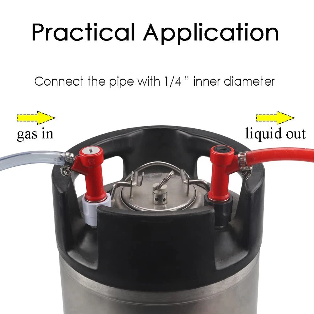 Pin Lock Barb Quick Disconnect Include: Pin Lock Gas Disconnect Barb type 3 pcs Pin Lock Liquid Disconnect Barb type 3 pcs Worm clamps 6 pcs Material: PBT Material for Pin Lock Quick Disconnect Stainless Steel for Worm Clamps Use: The Pin Lock Barb Disconnects used for Cornelius Style Pin Lock Keg, Works for Beer or Soda. Guarantee: Quality Guarantee, any problem for Pin Lock Disconnect Barb Sets, Money Back or Replacement Free. Tips: Tighten the Clamps when it Connects the Beer Gas Line will guarantee no Leak. Sometimes the Gas Hose is very hard to connect, you can put the hose in the hot water, then connect the equipment. 1.Include: Pin Lock Gas Disconnect Barb type (3 pcs), Pin Lock Liquid Disconnect Barb type (3 pcs), Worm Clamps 6 pcs; 2.Material: PBT Material for Pin Lock Quick Disconnect and Stainless Steel for Worm Clamps; 3.Easy Connect: The Gray Base Pin Lock Keg Disconnect connect 3/16" Gas Line, and the Black Base Pin Lock Keg Disconnect connect 3/16" Beer Line; 4.Use: The Pin Lock Barb Disconnects used for Cornelius Style Pin Lock Keg, Works for Beer or Soda; 5.Guarantee: Quality Guarantee, any problem for Pin Lock Disconnect, Money Back or Replacement Free.