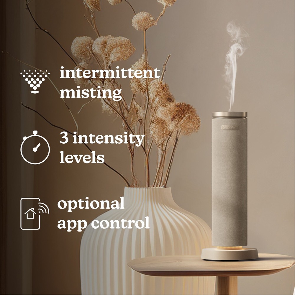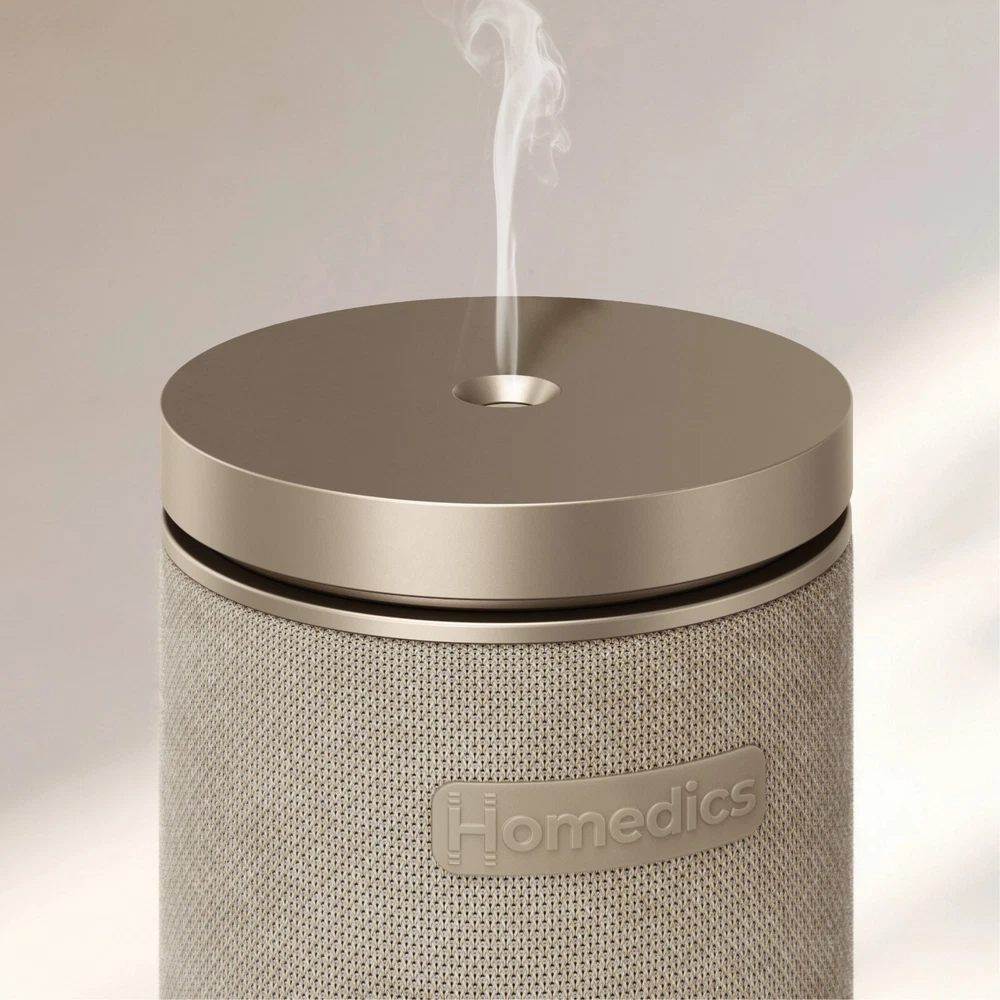 Homedics Serenescent Fabric Waterless Aroma Diffuser | Certified Refurbished Homedics SereneScent Waterless Aroma Diffuser | Essential Oil | Light Feature USE WITH HOMEDICS SERENESCENT 120ML FRAGRANCE OILS NO WATER, NO HEAT, NO MESS: Enjoy the mess-free, waterless diffuser that gives you a scent for any larger space (bedrooms, living rooms, dining rooms, etc.). A revolutionary alternative to the traditional diffuser or candle, this is a safer way to bring set-and-forget fragrance to your home. AMAZING SMELLING HOME THE HEALTHY WAY: Most premium home fragrances, whether candles, plug-ins, or sprays, use synthetic chemicals in their formulation. SereneScent home fragrance oils (sold separately) are created with all natural ingredients for a premium mood-boosting layer to home decor. MAKE THE FRAGRANCE EXPERIENCE YOURS: Choose from 3 levels for a fragrance mist intensity that's exactly the way you want it. The waterless diffuser works using intermittent mist intervals with pauses to achieve the precise aroma level you desire. The unit does not mist continuously. The base control and app include scent intensity, timer, and lights for easy-to-use experience. LIGHTS FADE, FRAGRANCE CONTINUES: This SereneScent diffuser is designed to effortlessly blend in with your decor. Turn the lights on and enjoy the warm glow of ambient solid or breathing lights in white, red, blue, purple, green, or orange. CRAFTED WITH NATURAL INGREDIENTS: Use with Homedics SereneScent 120ml clean & natural home fragrance oils (sold separately) - certified up to 100% USDA biobased. Each scent carries a different sensory experience. Choose your favorite 120ml SereneScent bottle to easily refill the diffuser. PATENTED SCENT TECHNOLOGY: The premium fabric diffuser mists with lighter-than-air microdroplets to efficiently disperse ultra-fine luxurious fragrance throughout your space. Patented whisper-quiet air diffusion technology requires no water. WHAT'S IN THE BOX: (1) Homedics SereneScent Fabric Home Fragrance Diffuser, (1) Adapter with Power Cable