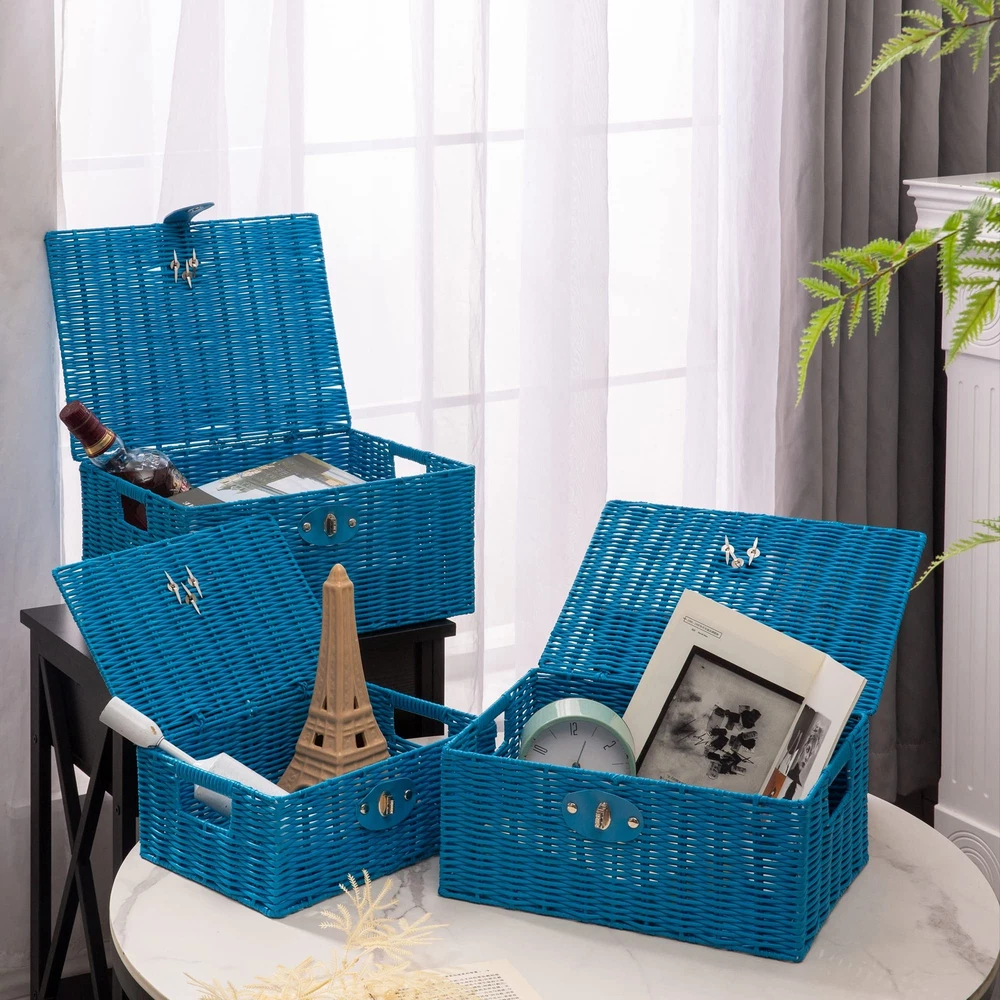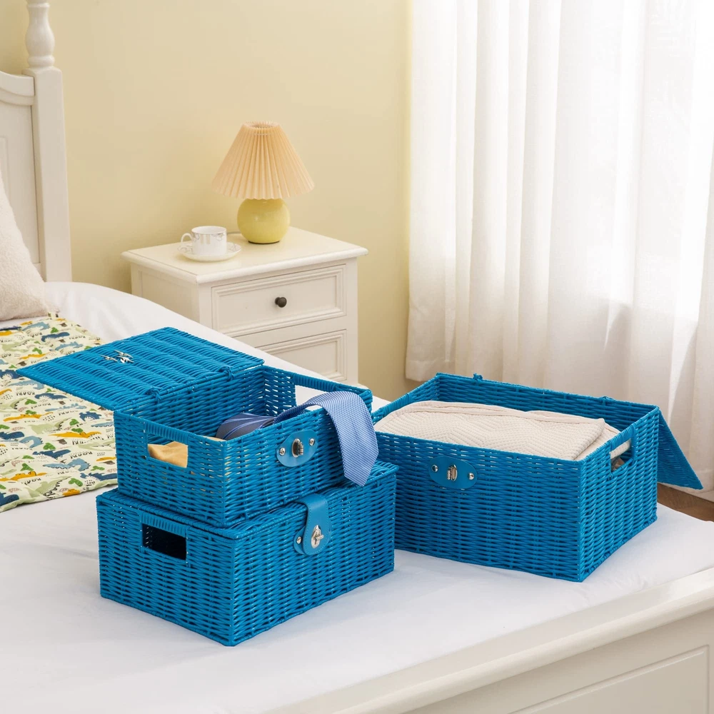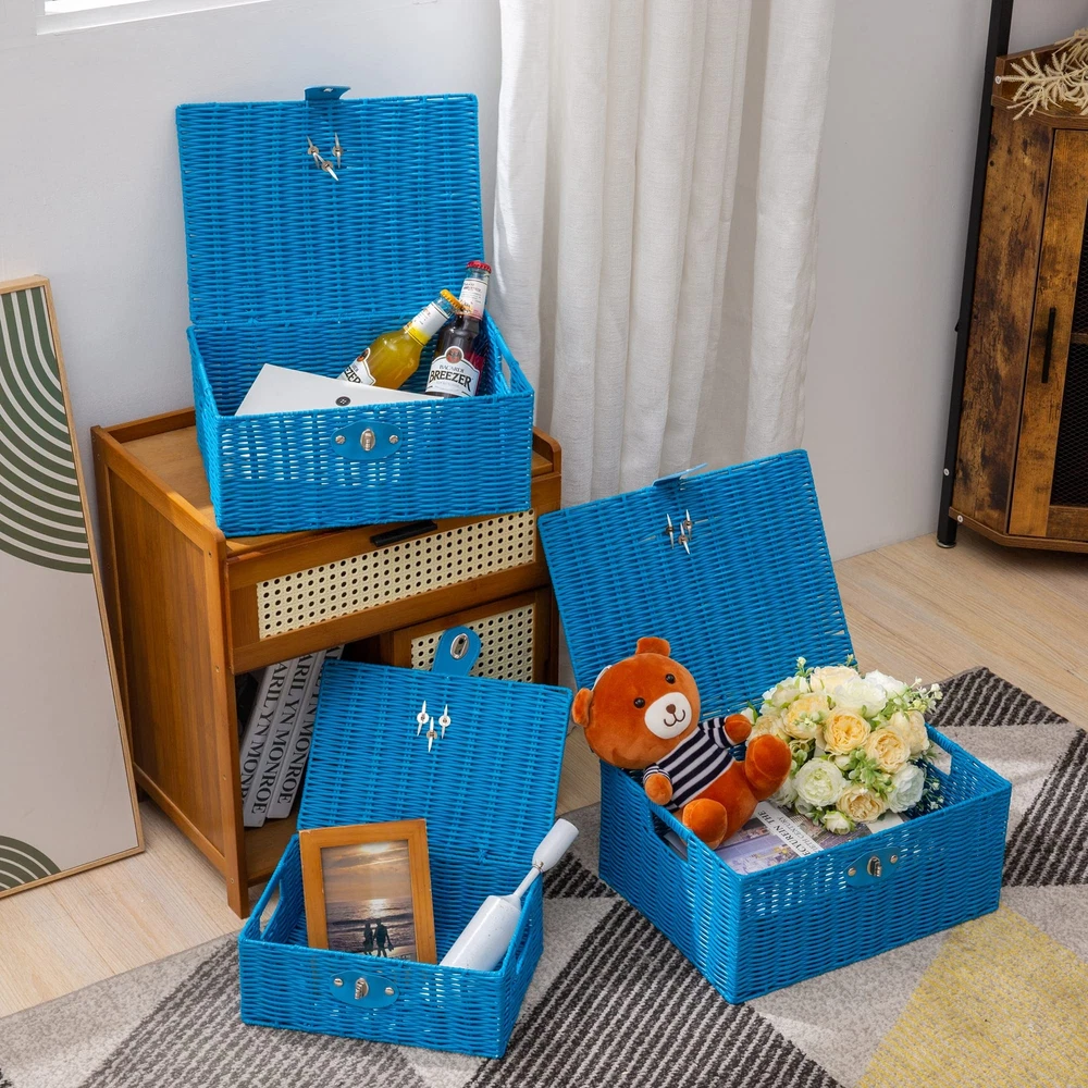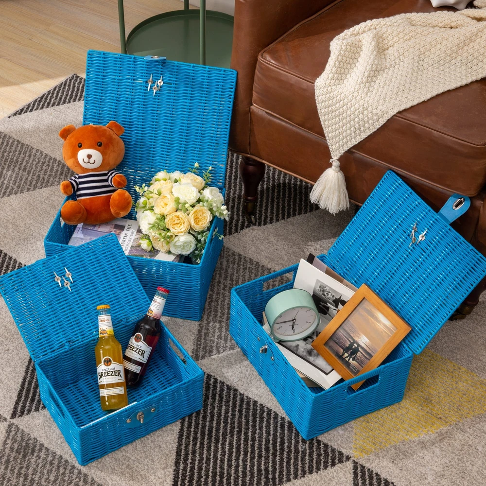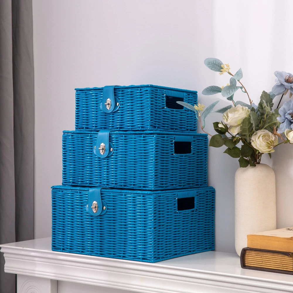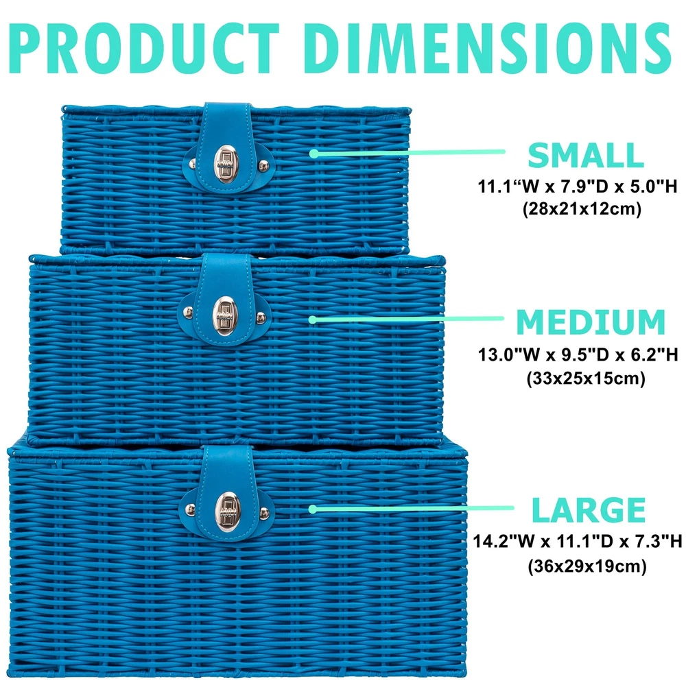 Homepeaz Set of 3 Woven Wicker Storage Basket Box with Lid & Lock, Built-in Carry Handles, Multifunctional Storage Organiser for Nursery, Baby, Clothes, Toys, Books, Large/Medium/Small Size (Sky Blue) đăDecorative hand-woven basketăHomepeaz's storage baskets are crafted from plastic imitation rattan and woven with a classic and attractive design.the material and color restored the texture of the wicker and rattan very realistically, giving it a neutral look that can blend in with a variety of aesthetics. By placing these rectangle baskets in your rome or patio, you can feel the earthy odor as they will delight your corner in many rustic and vintage styles, very sweet baskets. đăPremuim Material and Strong Frameă Homepeaz's baskets are woven by plastic imitation and the surface is soft, smooth and waterproof, which perfectly retains the texture of wicker rattan and makes these baskets very easy to clean. perfect storage solution for your bathroom or dressing room, makeups, accessories, and more. Made of sturdy metal frame, durable and long lasting, it ensures your belongings remain protected and the box remains at its full dimensional capacity. You cannot miss it! đăLeather Look Strap Lock and Insert Nesting HandlesăThis is amazing design, The fashionable, chic woven style of the hamper boxes mean that organising your belongings doesnât have to be an ugly feat, with a leather-look strap and metal lock for that sleek, quality feel.The boxes Builded in handles nesting for convenient storage and lightweight allow easy to carry.It fits in with any decor, also that they stack on top of each other in different sizes and the leather look strap for closure. đăAll-Occasion StorageăAvailable in a versatile grey / black / white, the woven baskets are suitable for use in a variety of rooms in your home, Waterproof and very easy to clean, securely storing anything from kidâs toys to food, books or bathroom toiletries, bedroom or kitchen, kitchen, living room and patio. With three different large/medium/small sizes, you can use in stylish stacked form or as storage in different rooms around the house. Shipping We offer FREE shipping on all orders! We use a selection of shipping services such as UPS, FedEx, USPS etc. We only ship to the lower 48 states, no APO/FPO addresses or PO Boxes allowed. Local pickups and combined shipping options are not provided at this time. Return You can return a product for up to 30 days from the date you purchased it. Any product you return must be in the same condition you received it and in the original packaging. Please keep the receipt. Payment We accept payment by any of the following methods: PayPal Please pay as soon as possible after winning an auction, as that will allow us to post your item to you sooner! Feedback Customer satisfaction is very important to us. If you have any problem with your order, please contact us and we will do our best to make you satisfied. Contact Us If you have any queries, please contact us via ebay. We usually respond within 24 hours on weekdays. Please visit our eBay store to check out other items for sale! Thank you for shopping at our store.