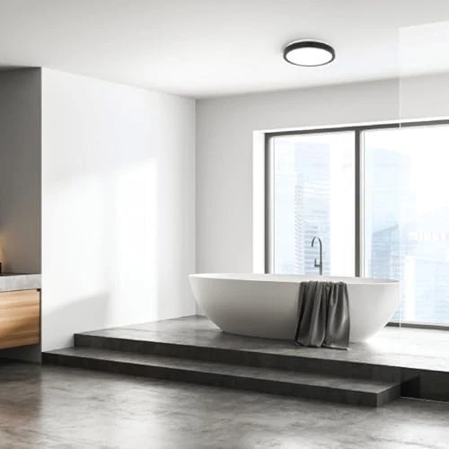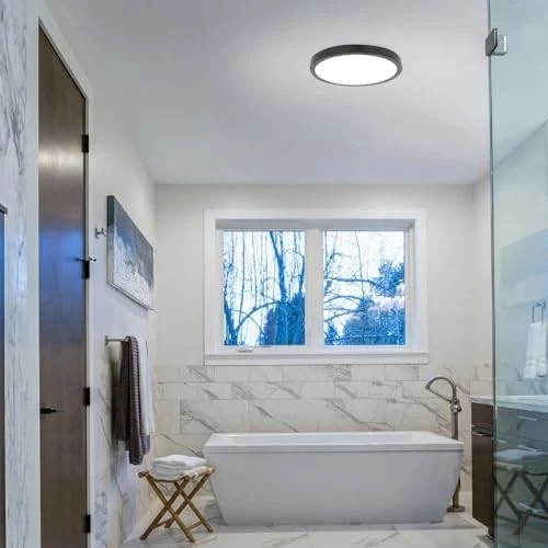 CLASSY CEILING LIGHT FIXTURE: Homewerks bathroom ceiling fan with light comes with magnetic trim and a matte black finish. It's designed to look more like a decorative light and discreetly hides the exhaust fan. QUIET FLOW: Homewerks semi-flush mount ceiling fan with light produces 90 CFM airflow for a healthier home and works best in rooms up to 90 square feet. This 1.5 sones fan operates as quietly as rustling leaves. ENERGY-SAVING LED: A dimmable, integrated LED light is built into this bathroom fan for ceilings. It needs no bulbs and delivers 1000 lumens while you get significant energy savings yearly. COOL WHITE LED BULB: Homewerks bathroom ceiling light has a 4000K color temperature that offers your room a brightly lit space. This LED light color temperature will help with detailed tasks like shaving or putting on makeup. EASY TO INSTALL: The EasyAnchor system of Homewerks exhaust ceiling fan is designed for faster, easier installation. It comes in a standard housing size for helpful installation with no attic access required.