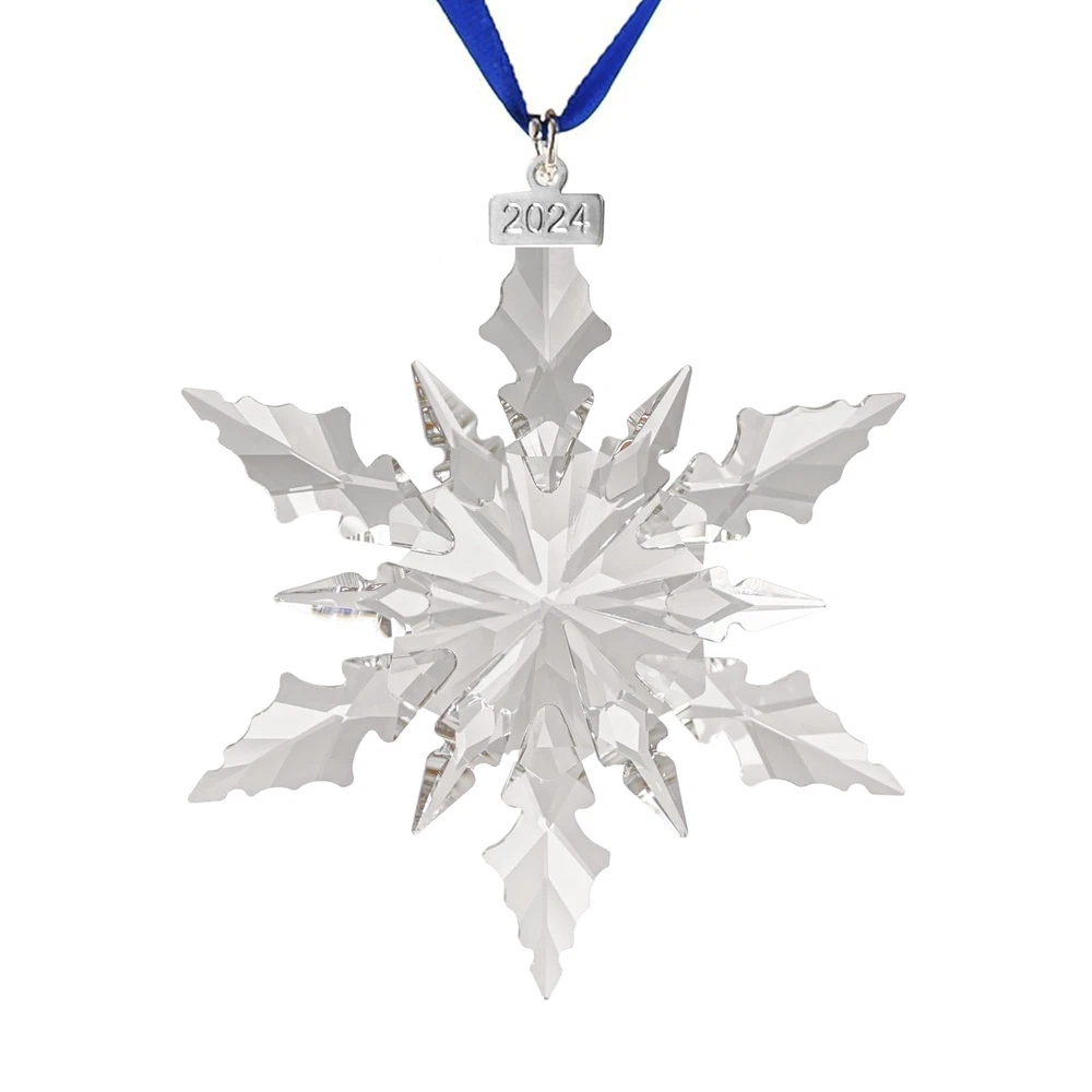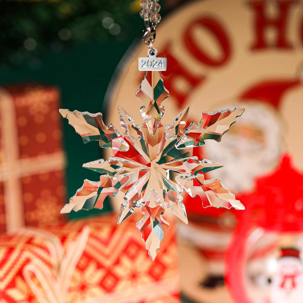 Amazing shiny Christmas snowflake decorations in multiple colors! Perfect Christmas decorations, don't hesitate! The snowflakes are made of crystal and are transparent and natural. Sparkling in different angles and lights. Decorate your Christmas tree. Please note. Because they are hand cut and made items, please expect slight variations. There may be some slight variations in the design and shape of the box. If you receive a damaged package, please contact us immediately and we will give you satisfactory results. Complete Package: Includes 1 x 4.3-inch diameter snowflake ornament, 2 x ribbons, 1 x crystal chain, and 1 x blue gift box High-Quality Crystal: Crafted from sparkling, high-quality crystal that is bright and transparent, each snowflake is carefully designed to refract light beautifully Delicate Snowflake Design: Adds a festive Christmas atmosphere; hanging it on your Christmas tree or window creates a beautiful winter landscape Transparent and Natural: Crystal snowflakes are transparent and natural, perfect for Christmas; Use them to decorate your tree or hang them in the window to catch the light 2024 Annual Ornament: A special gift for Christmas and New Year, adding sparkle to your collection and someone's holiday