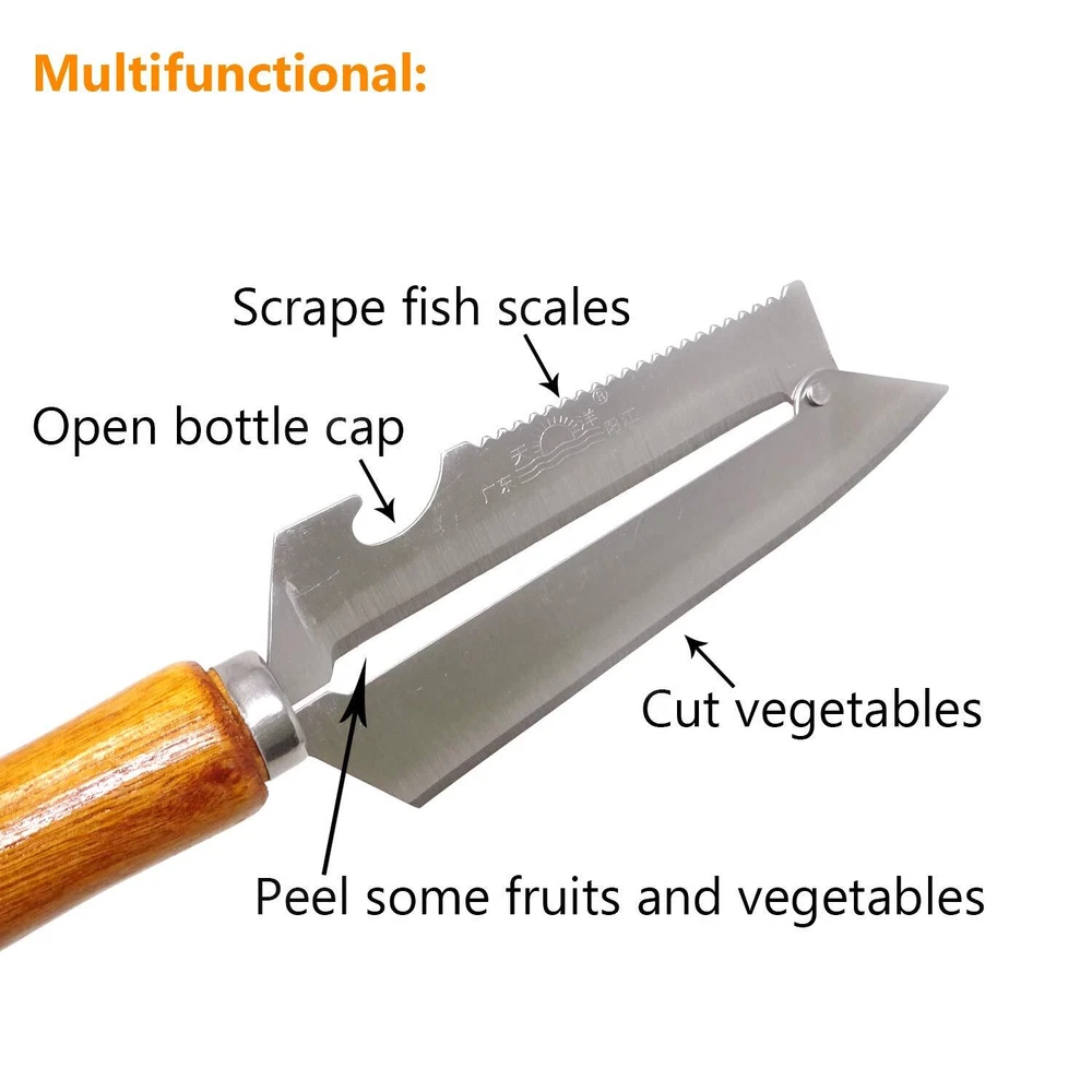 Honbay Sharp Multifunctional Stainless Steel Wooden Handle Knife Fruits Peeler Vegetables Knife Fish Scales Scraper Bottle Opener Package includes: 1 pcs multifunctional knife Material: stainless steel + wood Handle length: 9cm/3.54inch; Total length: 21cm/8.27inch; Blade width: 4.2cm/1.65inch Peel some fruits and vegetables, such as apples, pears, pineapples, sugarcane, potatoes, pumpkin, lotus root Also can be used to cut vegetables, scrape fish scales, open bottle cap.A must-have at home! Quantity: 1pcs Material: stainless steel + wood Handle length: 9cm/3.54inch Total length: 21cm/8.27inch Blade width: 4.2cm/1.65inch Multifunctional: 1. peel some fruits and vegetables, such as apples, pears, pineapples, sugarcane, potatoes, pumpkin, lotus root 2. cut vegetables 3. scrape fish scales 4. open bottle cap Sharp-cut Durable and easy to use A must-have at home Please check size before shopping Shipping We offer FREE shipping on all orders! We use a selection of shipping services such as UPS, FedEx, USPS etc. We only ship to the lower 48 states, no APO/FPO addresses or PO Boxes allowed. Local pickups and combined shipping options are not provided at this time. Return You can return a product for up to 30 days from the date you purchased it. Any product you return must be in the same condition you received it and in the original packaging. Please keep the receipt. Payment We accept payment by any of the following methods: PayPal Please pay as soon as possible after winning an auction, as that will allow us to post your item to you sooner! Feedback Customer satisfaction is very important to us. If you have any problem with your order, please contact us and we will do our best to make you satisfied. Contact Us If you have any queries, please contact us via ebay. We usually respond within 24 hours on weekdays. Please visit our eBay store to check out other items for sale! Thank you for shopping at our store.