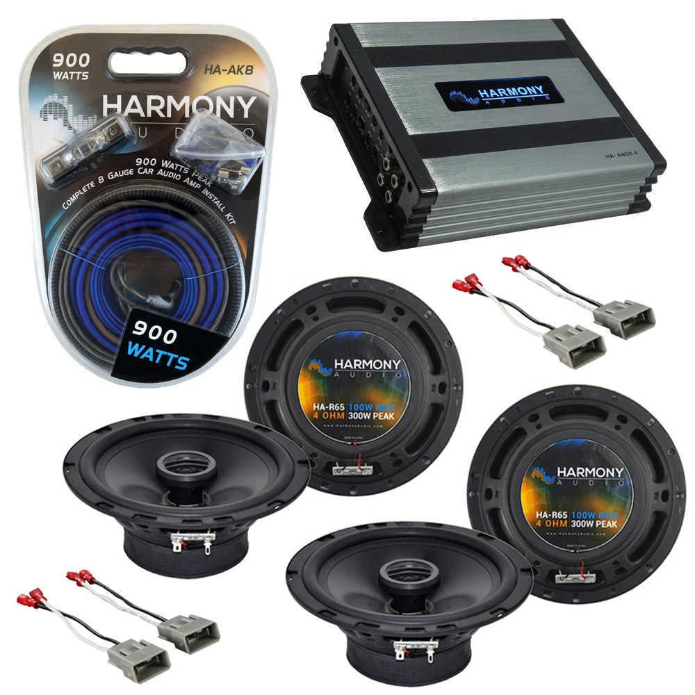 HiFi Sound Connection Car Audio eBay Store 3 day shipping to Continental US unless additional handling About Us Policies & Support Visit our store Office Hours: Mon-Fri: 8:30AM-9:00PM CST | Sat-Sun: 10:00AM-7:00PM CST 3 day shipping to Continental US *unless additional handling Store Categories All Categories Car Audio + - Amplifiers - Amp & Sub Combos - Car Audio Packages - Amp & Speakers Combo - Empty Sub Boxes - Factory Radio - In-Dash Receivers - Motorcycle Speakers - Signal Processors - Snowmobile Speakers - Speakers - Subwoofers - UTV Side by Side Speakers - Kick Panels - Car Speaker Packages Car Audio Accessories + - 12 Volt Power Supplies - Amp Kits - Antennas - Bass Blockers - Batteries - Battery isolator - Capacitors - Cooling Fans - Dash Kits - Distribution Blocks - Fuse Holders - Fuses - Installation Adapters - Installation Harness - Installation Interfaces - Interconnects - iPod Solutions - Neon Lighting - OEM Harness - Signal Path Devices - Sound Damping - Speaker Box Fabric - Subwoofer Grills - Terminals - Wire Harnesses - Wiring - Security Installation - Zune Solutions - Wall Mount Brackets - Other Home Theater + - In Wall Speakers - In Ceiling Speakers - Outdoor Speakers - Receivers - Other Home Theater Accessories + - Interconnects - Structured Wiring - Wall Plates - Cables - Power Supplies - Headphones - MP3 Player Accessories - Speakers - Subwoofers - Other Marine Audio + - Accessories / Remotes - Jetski Speakers - Marine Amplifiers - Marine CD Players - Marine Speakers - Marine Subs - Other Mobile Video + - Custom Fit Headrest Monitors - DVD Players - In-Dash LCD Monitors - License Plate Cameras - Overhead Monitors - Rearview Mirror Monitors - Sun Visor Monitors - Video Installation Parts - Parts & Accessories Musical Instruments + - Instrument Cases - Electric Guitars - Acoustic Guitars - Bass Guitars - Percussion - Parts & Accessories - Other Instruments - Instrument Amplifiers Pro Audio + - Amplifiers - Audio Signal Processing - Cases & Bags - DJ Equipment - Music Production - PA Speakers - Power Conditioning - Recording Equipment - Sound Systems - Wired Microphones - Wireless Microphones - DJ Packages - Parts & Accessories - Mixers Pro Lighting + - Area Effects - Cables - DMX Controllers - Lighting - Mounting Hardware Cases Bags - Parts & Accessories - Lighting Packages Others Show all subcategories Honda Civic 1992-1995 Factory Speaker Replacement Harmony (2) R65 HA-A400.4 Amp Specifications Description Questions & Answers Honda Civic 1992-1995 Factory Speaker Replacement Harmony (2) R65 HA-A400.4 Amp SKU: HA-SPK-PACKAGE998-AMP-H This Package Includes the Following Items: 1 x Harmony Audio HA-A400.4 Car Stereo Alloy Amp 4 Channel 800W Fulll Range Speaker or Sub Amplifier 1 x Harmony Audio HA-AK8 Car Stereo Complete 8 Gauge 900W Amp Amplifier Install Kit - Nickel 2 x Acura CL RL TL Honda Accord Civic Odyssey Factory Speaker Replacement Harness 2 x Harmony Audio HA-65 Car Stereo Rhythm Series 6.5" Replacement 300W Speakers & Grills Harmony Audio HA-A400.4 Car Stereo Alloy Amp 4 Channel 800W Fulll Range Speaker or Sub Amplifier: Specifications : Alloy Series 4 Channel Class D Full Range Amplifier Power Handling: 14.4V @ 4 Ohm Stereo 75 Watts RMS x 4 150 Watts PEAK x 4 14.4V @ 4 Ohm Bridged 200 Watts RMS x 2 400 Watts PEAK x 2 14.4V @ 2 Ohm Stereo 85 Watts RMS x 4 170 Watts PEAK x 4 Frequency Response: 10Hz-30kHz Signal to Noise Ratio: 95dB, A-weighted RCAs: Input Turn On: DC Offset or 12V Remote Recommended External Fuse: 40A Recommended Wiring Power Gauge: 8 Gauge Dimensions: 8-5/8" Width x 6-1/8" Width x 2" Height User Adjustable Settings : Front and Rear Selectable Filter: Full, High Pass or Low Pass Input Type: High or Low Level Signal (Selectable Switch) High Level Input Sensitivity: 2.5V - 40V Low Level Input Sensitivity: 90mV - 10V Gain: (Knob Variable) Low Pass Filter: 50Hz - 500Hz (Knob Variable) High Pass Filter: 50Hz - 2kHz (Knob Variable) Bass Boost: 0dB - 12dB @ 50Hz (Knob Variable) Features : Includes HA-EASY x 2 Speaker Wire to RCA Adapter to Simplify Installation Compatible with both Aftermarket and Factory Source with DC Offset Feature When DC Offset Feature is used Remote Terminal becomes a 12V Output to Turn On Another Device Brushed Aluminum Case with Light Up Blue LED Harmony Logo Power and Protection Light to Easily See Amp Status Harmony Audio HA-AK8 Car Stereo Complete 8 Gauge 900W Amp Amplifier Install Kit - Nickel: Specifications : 17FT Flexible Matte Blue 8GA Power Cable 3FT Flexible Matte Black 8GA Power Cable 20FT Flexible Matte Blue 16GA Speaker Wire 17FT Flexible Matte Gray & Black RCA Cable 17FT Flexible Matte Blue Remote Wire 6FT Split Loom Mini ANL Fuse Holder 80 Amp Mini ANL Fuse (2) 8GA Blue & Black 5/16" Ring Terminals (2) 8GA Blue & Black Spade Terminals (5) 16GA Blue & Black Spade Terminals (4) Pan Head Screws (10) Wire Ties Acura CL RL TL Honda Accord Civic Odyssey Factory Speaker Replacement Harness: Specifications : Simply plug and play installation, no cutting required Clearly marked positive and negative connection Larger positive and smaller female slide speaker connectors Ideal for any size aftermarket speakers 18 gauge high quality speaker wire Each package will install a pair of speakers Application Guide : Acura CL 1997-2003 Acura Integra 1986-2001 Acura Legend 1986-1996 Acura MDX 2001-2006 Acura RL 1999-2013 Acura TL 1996-2014 Acura Vigor 1992-1994 Honda Accord 1982-2007 Honda Civic 1986-2011 Honda CRV 1997-2011 Honda CRX 1986-1991 Honda Element 2003-2011 Honda Insight 2001-2006 Honda Odyssey 1995-2014 Honda Pilot 2003-2011 Honda Prelude 1986-2001 Honda S2000 2000-2009 Isuzu Oasis 1996-1999 Harmony Audio HA-65 Car Stereo Rhythm Series 6.5" Replacement 300W Speakers & Grills: Specifications : 6-1/2" Rhythm Series 2-Way Car Speaker Pair Power Handling: Peak: 300 watts RMS: 100 watts Sensitivity: 90dB Frequency Response: 40Hz-20kHz Mounting Depth: 2 3/8" Mounting Cutout Diameter: 5 11/16" Tweeter Size: 1/2" Single 4 Oh
