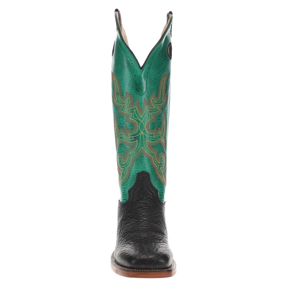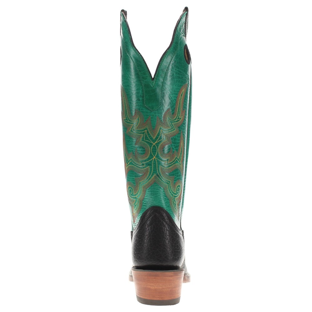 Hondo Men's Genuine Green/Black Leather Square Toe Cowboy Boots BUY NOW FOR 149! The Hondo Men's Genuine Green/Black Leather Square Toe Cowboy Boots are a stylish and durable choice for any cowboy enthusiast. Made with high-quality leather, these mid-calf boots feature a classic square toe shape and intricate embroidered accents, perfect for casual or formal occasions. The pull-on closure makes them easy to slip on and off, while the leather outsole and insole provide comfort and support for all-day wear. Crafted by Hondo Boots in Mexico, these boots embody the western theme and timeless cowboy style.