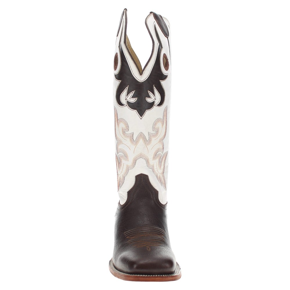 Hondo Men's Genuine White/Brown Leather Square Toe Cowboy Boots BUY NOW FOR 149! The Hondo Men's Genuine White/Brown Leather Square Toe Cowboy Boots are a stylish and durable choice for any cowboy enthusiast. Made with high-quality leather, these mid-calf boots feature a classic square toe shape and intricate embroidered accents, perfect for casual or formal occasions. The pull-on closure makes them easy to slip on and off, while the leather outsole and insole provide comfort and support for all-day wear. Crafted by Hondo Boots in Mexico, these boots embody the western theme and timeless cowboy style.