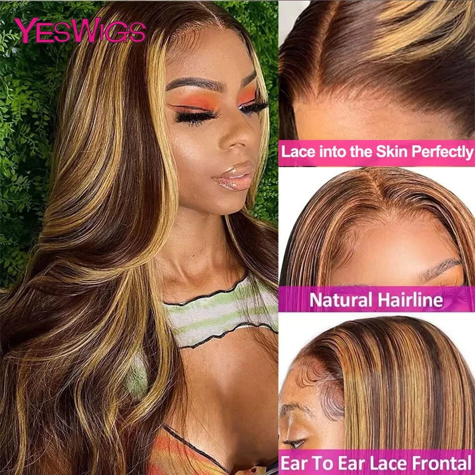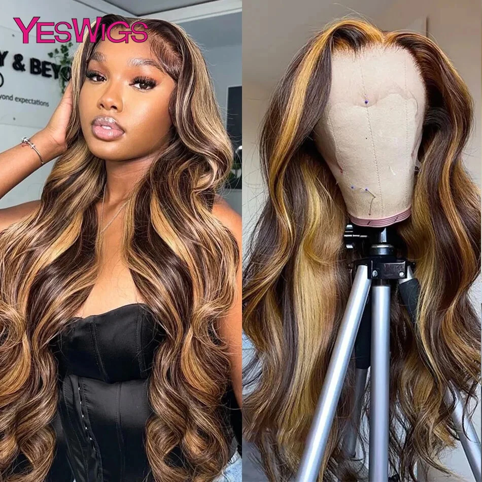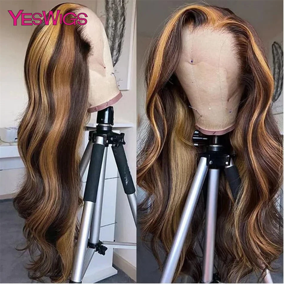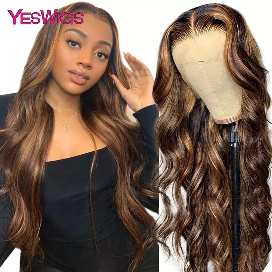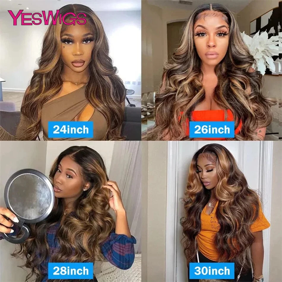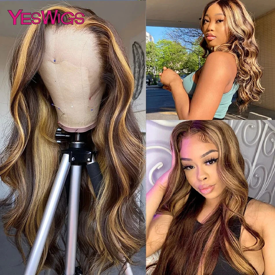Honey Blonde Body Wave Human Hair Lace Front Wig Highlighted