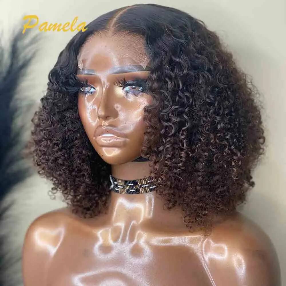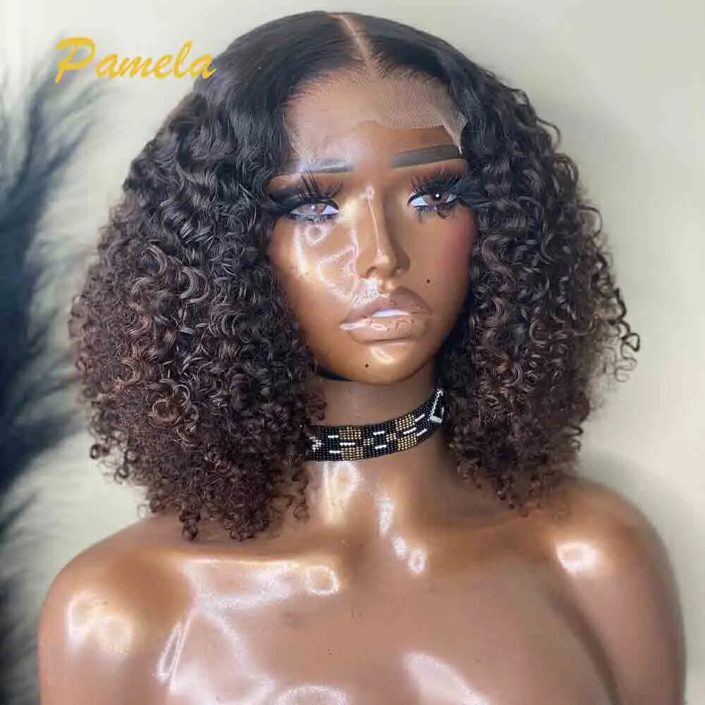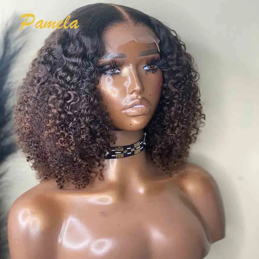 $ 112.95HD 13X4 Highlight Brown Lace Front Human Hair Wig Curly 4x4 Lace Closure Wigs