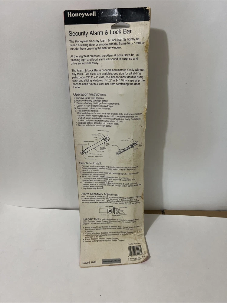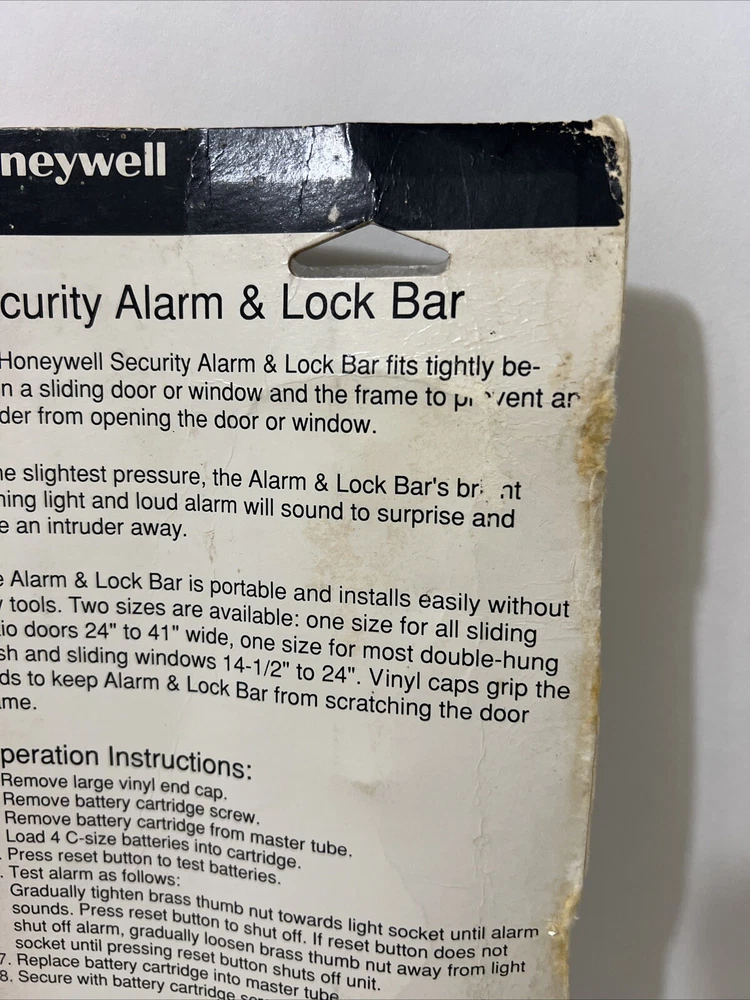 This security alarm and lock bar from Honeywell is a must-have for any home or business. With its durable construction and reliable performance, you can rest assured that your property is safe and secure. The brand name Honeywell speaks for itself, and this product is no exception. Designed for use on doors and other entryways, this alarm and lock bar is perfect for those who want to add an extra layer of security to their home or business. With its sleek design and easy-to-use features, you can be sure that this product will provide you with the peace of mind you need. So why wait? Order your Honeywell security alarm and lock bar today and enjoy the peace of mind that comes with knowing your property is always safe and secure.