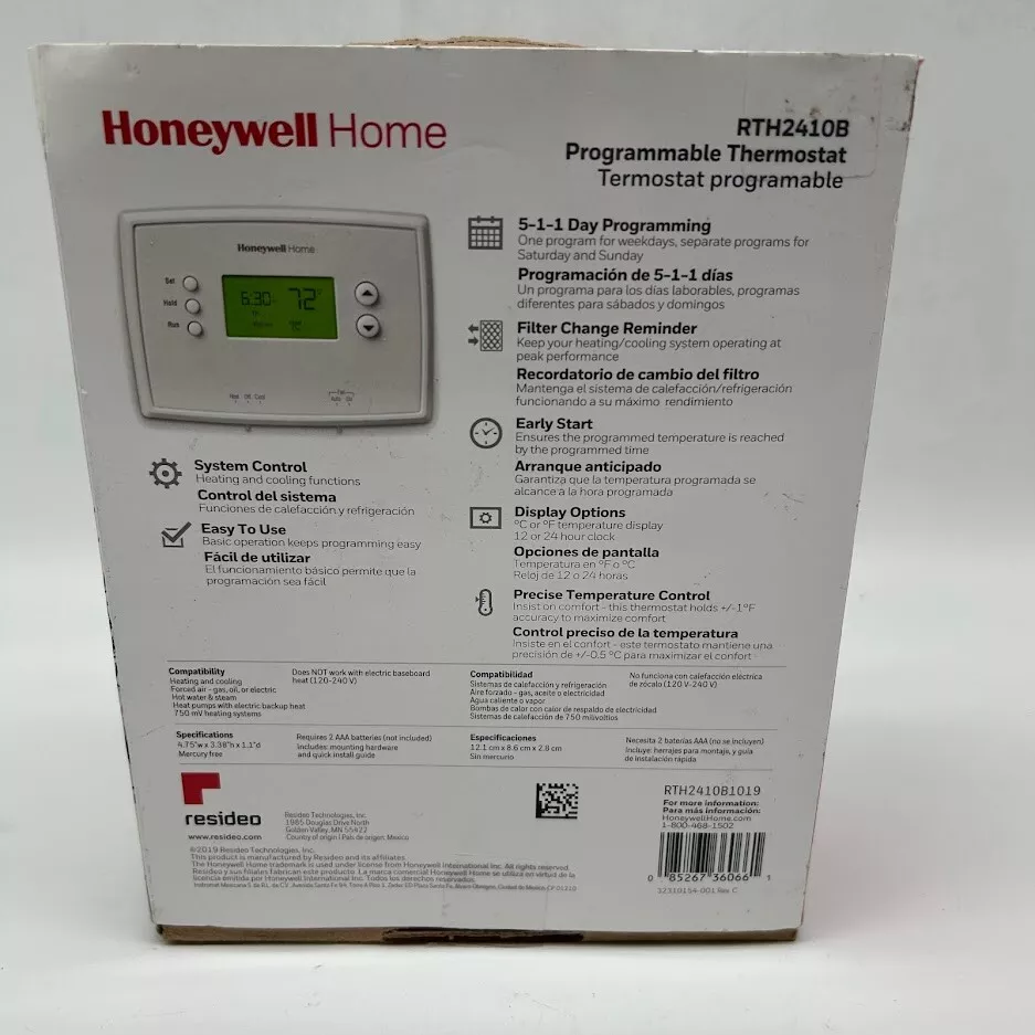 This is a NEW OPEN BOX item. The Honeywell Home 5-1-1 Day Programmable Thermostat offers a user-friendly interface with separate weekday and weekend programming , allowing you to customize your heating and cooling schedule with up to four periods per day . The backlit display ensures easy visibility, even in dimly lit rooms or hallways , while the precise temperature control maintains comfort within ±1°F . Key Features: Custom Programming – 1 program for weekdays and separate programs for Saturday & Sunday , with up to 4 time periods per day . Simple & Intuitive Interface – Easy operation for hassle-free scheduling . Precise Temperature Control – Maintains comfort within ±1°F for reliable performance. Backlit Display – Ensures clear visibility in any lighting condition. Filter Change Reminder – Helps maintain optimal HVAC efficiency . Ideal for homeowners looking for energy efficiency and convenience , the Honeywell Home 5-1-1 Programmable Thermostat allows you to set your comfort on your schedule . We take great care to inspect all items and ensure they are accurately described. Should you have any issues with your purchase, please let us know immediately. We are committed to resolving any concerns promptly and to your satisfaction. Our small business truly appreciates your patronage.