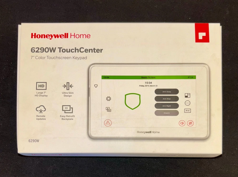 Intrusion Honeywell 6290W Touch Center 7" Color Wireless Touchscreen Keypad Alarm Control Specifications: Device Type: Wired Touchscreen Keypad Touchscreen: High-Resolution 7" WSVGA Resolution: 1024 x 600 Compatibility: Honeywell VISTA Systems Dimensions: 5.06"L x 7.94"W x 0.76"D Misc. Features: Backlit Screen, WIFI Connectivity, Console Mode, Quick Arming, Zone Bypassing, Chime, Voice Annunciation, Picture Slideshow
