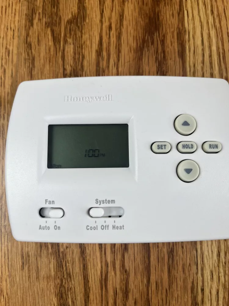 Honeywell PRO 4000 5-2 Day Programmable Thermostat TH4110D1007 Tested Works. Condition is Used. Shipped with USPS Ground Advantage.