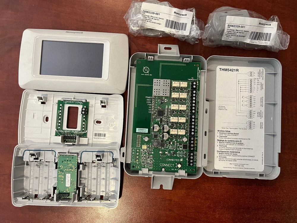 The Prestige® IAQ 2.0 thermostat is a 2 wire high definition color touch screen thermostat, 7 day programmable, configurable for residential and light commercial, up to 4 heat / 2 cool heat pump and up to 3 heat / 2 cool conventional, controls humidification, dehumidification and ventilation, provides Delta T Alerts and Diagnostics, works with the Equipment Interface Module and RedLINK™ accessories including the RedLINK™ Internet Gateway, Portable Comfort Control, Wireless Outdoor Sensor and Wireless Indoor Sensor.