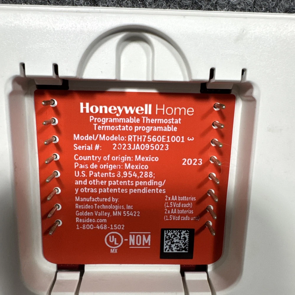 Enhance your home's heating, cooling, and air system with the Honeywell RTH7560E T5 7-Day Programmable Thermostat. With a rectangular shape and white color family, this programmable thermostat is compatible with universal products and has a 2-wire wire configuration. It runs on AA batteries with a low voltage of 24V and features a digital display. The Honeywell RTH7560E T5 7-Day Programmable Thermostat has a single-stage heating and cooling system type and is programmable for 7 days. It comes with dry wall plugs and mounting hardware, making it easy to install. Perfect for home improvement, this programmable thermostat has a product depth of 1.0625 inches, product length of 10 inches, product height of 3.875 inches, and product width of 5.31 inches. Get yours now and experience the convenience of programmable heating and cooling.