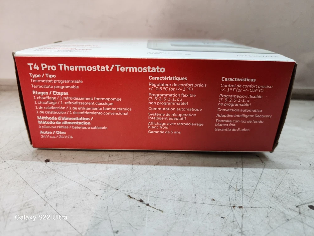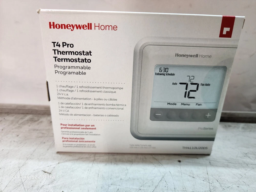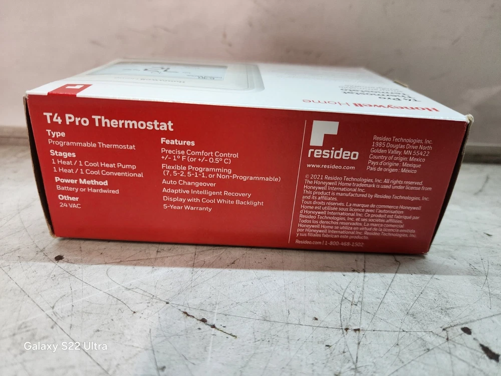 Enhance your home's heating, cooling, and air system with the Honeywell T4 Pro Thermostat. With its programmable features, this thermostat allows you to set different temperatures for 7 days, with 4 periods per day. It is compatible with various smart home systems like Apple HomeKit and Amazon Alexa, making it easier to control your home's climate. The Honeywell T4 Pro Thermostat has a square shape and is designed with a digital display and touch screen for easy control. It runs on low voltage, with a battery size of 2 AA batteries required. This thermostat is chemical resistant and has anti-island protection, ensuring that it works efficiently in any environment. Upgrade your home's climate control system with the Honeywell T4 Pro Thermostat. Company Branded