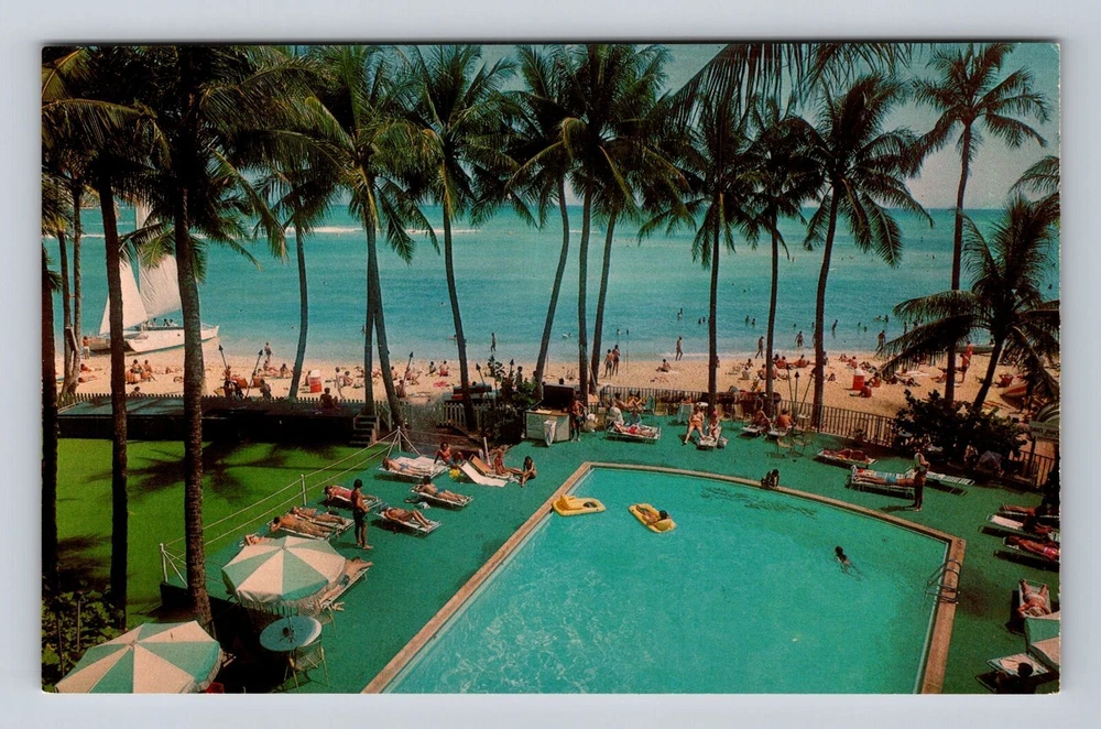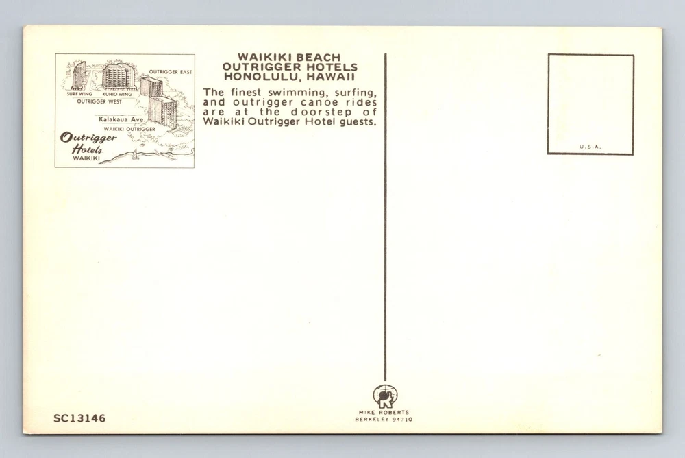 Honolulu HI-Hawaii, Waikiki Beach, Outrigger Hotels, Advertise Vintage Postcard