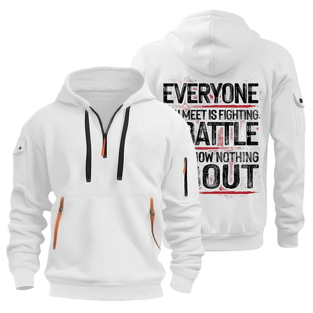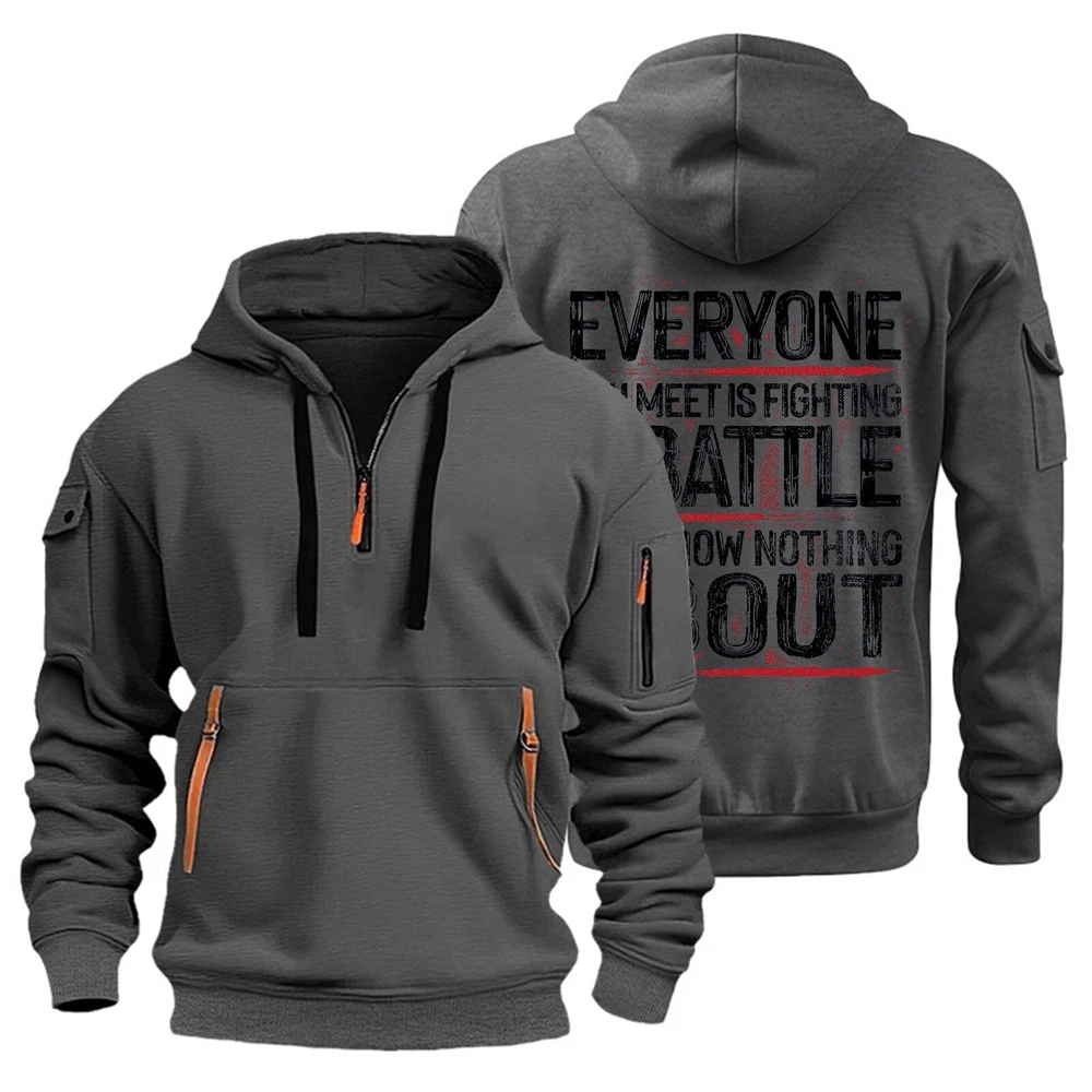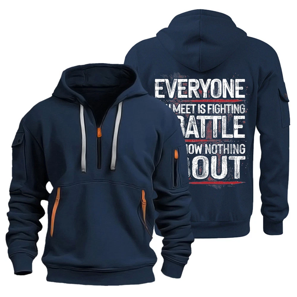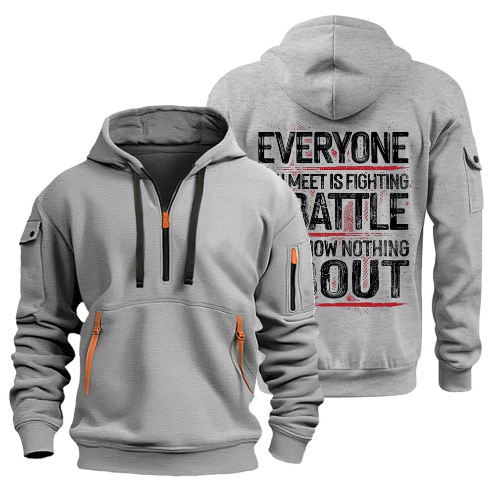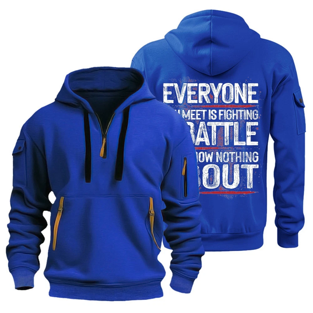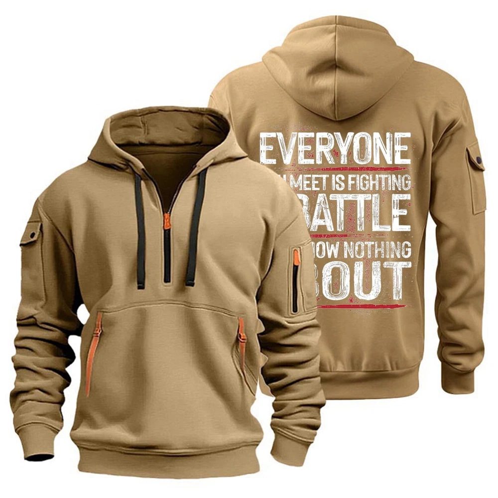 Hoodies for Men 1/4 Zip Pullover Tactical Printed Sweatshirt With Arm Pockets